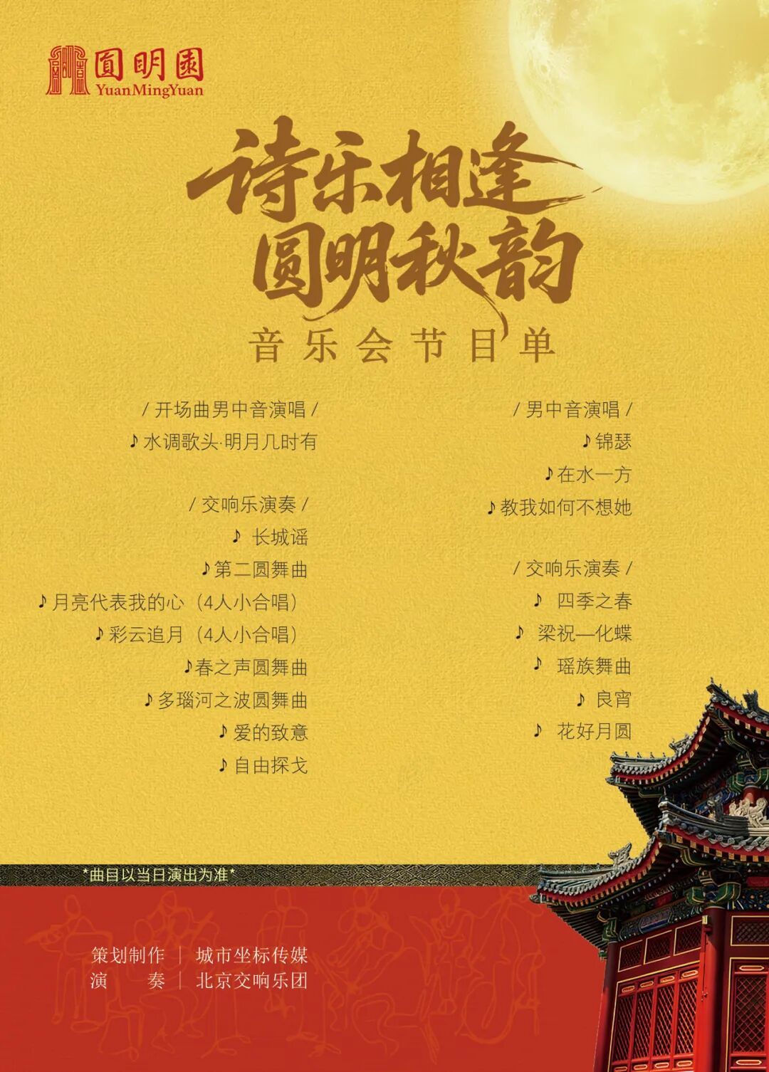 10月6日晚,“诗乐相逢·圆明秋韵”中秋音乐会将在圆明园正觉寺上演,作为系列音乐会的揭幕专场,本场音乐会将以“赏心秋月,风雅回归”主旨,重现中式古典意境中“诗乐相和”的至美境界。