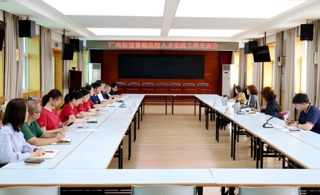 近日,广内街道组织召开暑期高校人才实践工作座谈会,街道工委书记王丹出席会议并讲话。街道工委副书记白杨,街道相关科室负责人以及7名暑期实践学生参加活动。