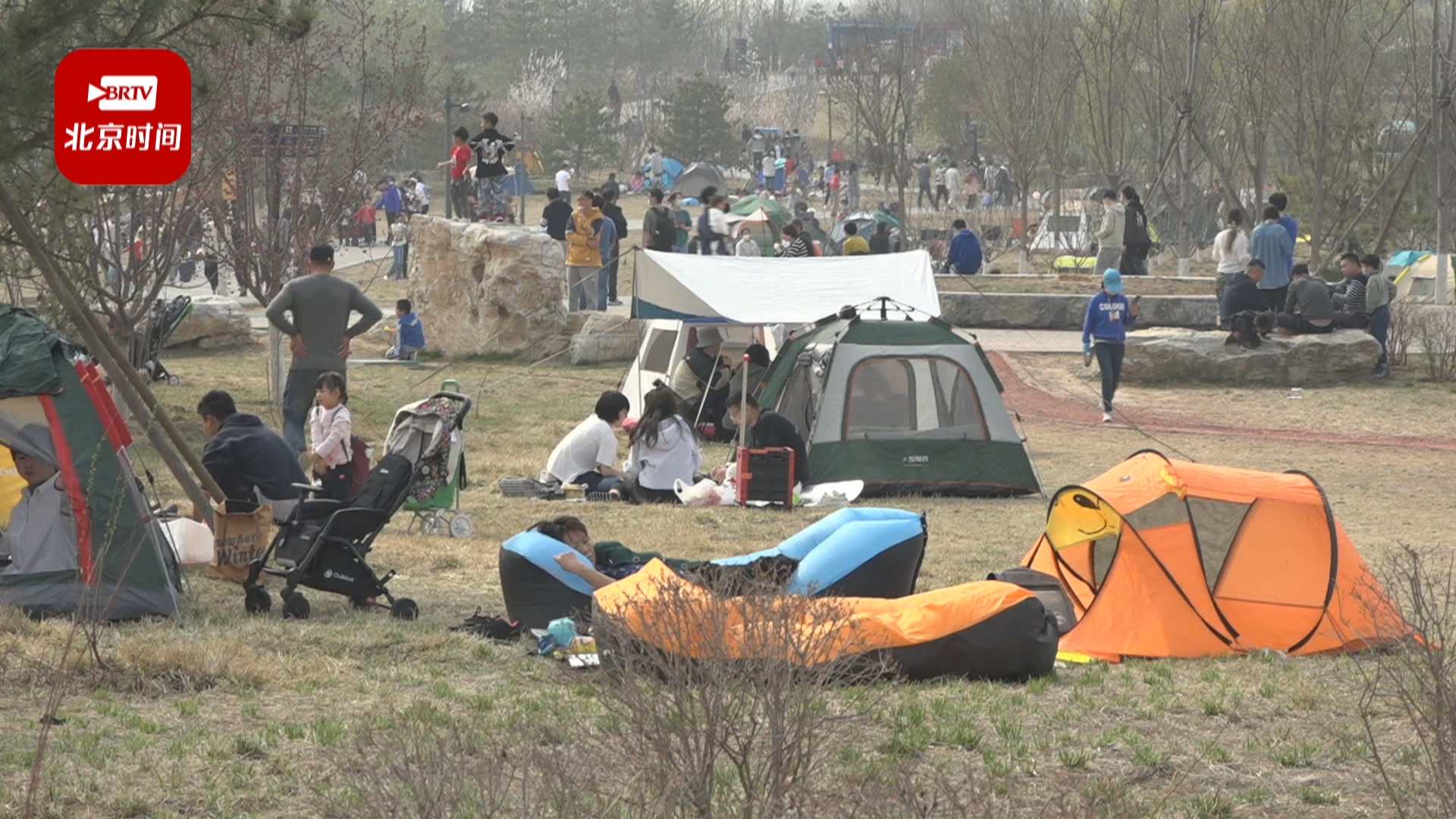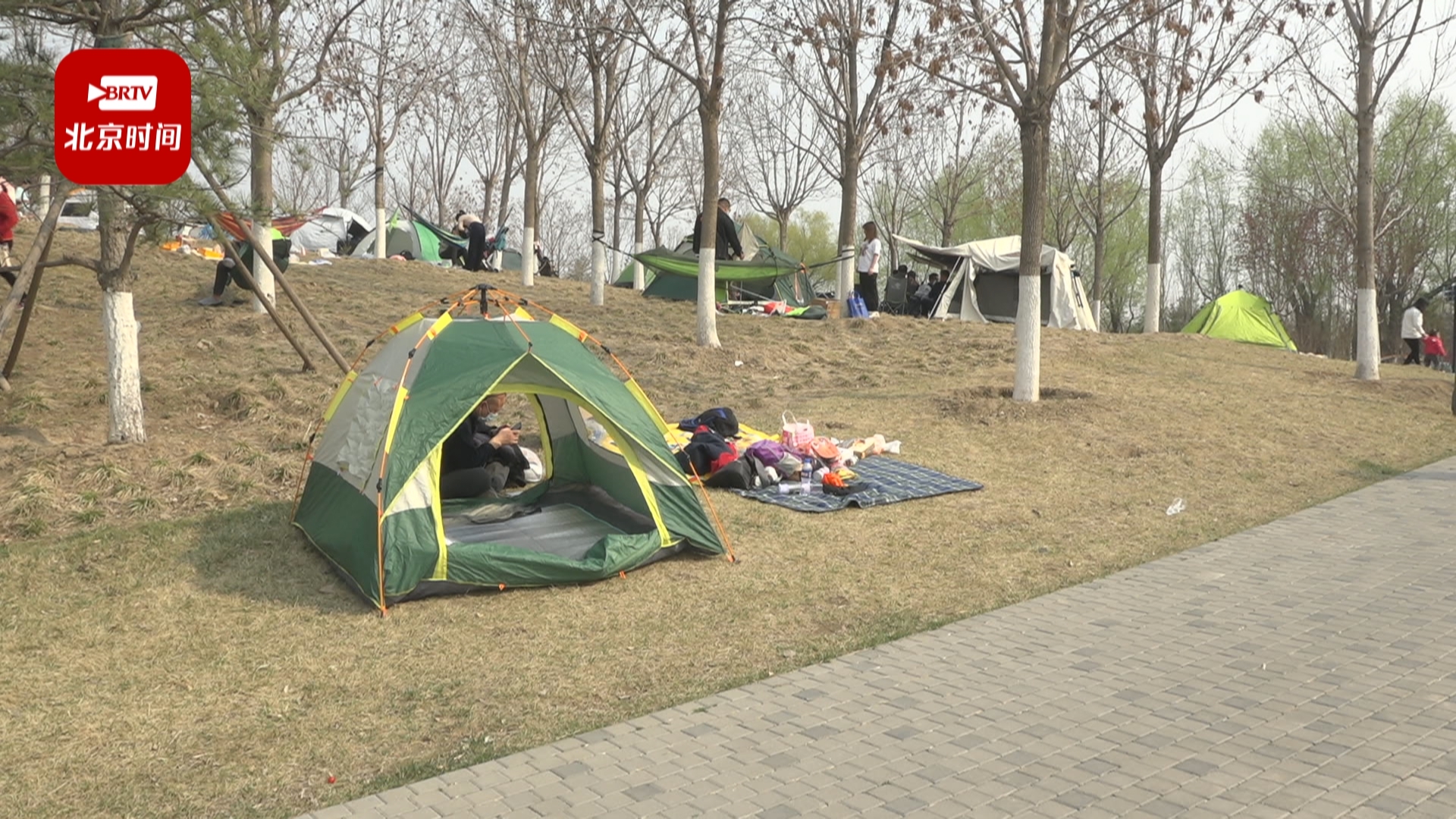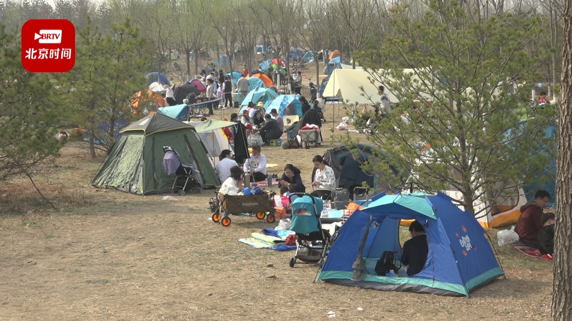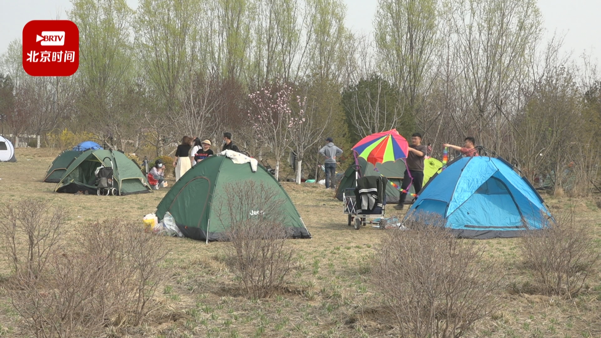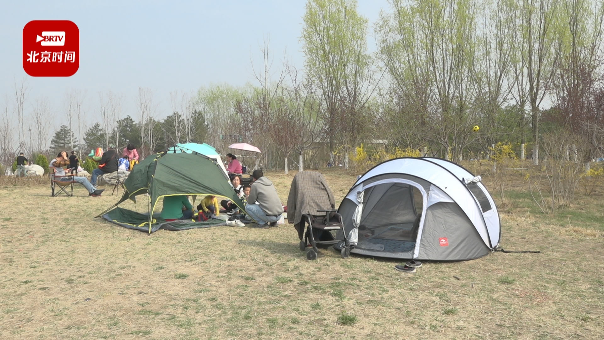 清明小长假,位于朝阳区的温榆河公园示范区内,3万平方米的帐篷营地向市民开放。恰逢天气晴朗,气温适宜,不少市民携家带口支开帐篷,惬意地享受难得的假期。