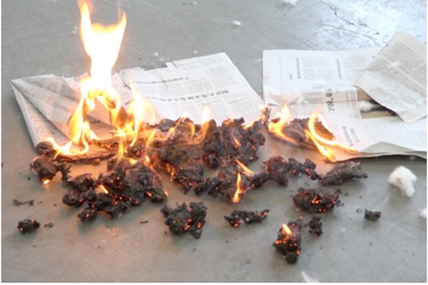 记者在实验现场看到,杨柳絮引燃后,燃烧速度极快,这也就是杨柳絮火灾蔓延速度快的原因。