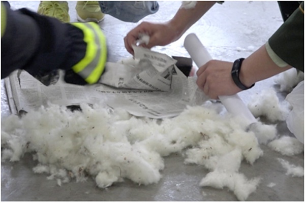 王建指导员也在实验中讲解到,“柳絮属于易燃物质,根据实验数据显示,柳絮遇到明火,可以在2秒内迅速燃烧。一些没有行为能力的小孩学习大人点火以及大人乱扔烟蒂现象,杨柳絮极易被引燃成为火灾导火索。”