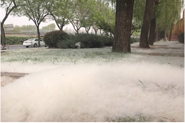 (在实验的准备过程中记者看见柳絮四处飘落)