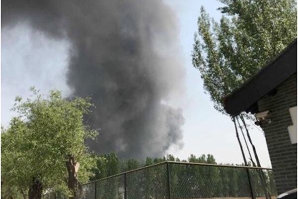 5月1日中午,位于北京市东北方向的蟹岛度假村停车场发生火灾。