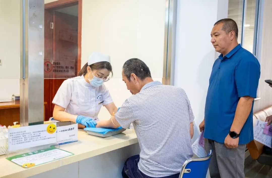 17日上午,延庆区中医医院体检中心早早排起了长队,大家有序进行采血、心电图、骨密度等项目检查。