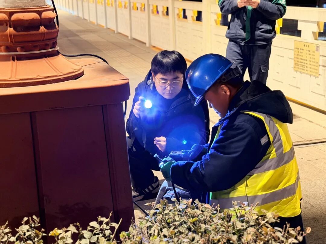 很多人以为,春节景观灯安装调试完成就完工了,可在王新宇看来,这仅占整体工作的七成,剩下的三成,则是后期的巡查与维护。这也是他和养护单位每晚的例行工作。
