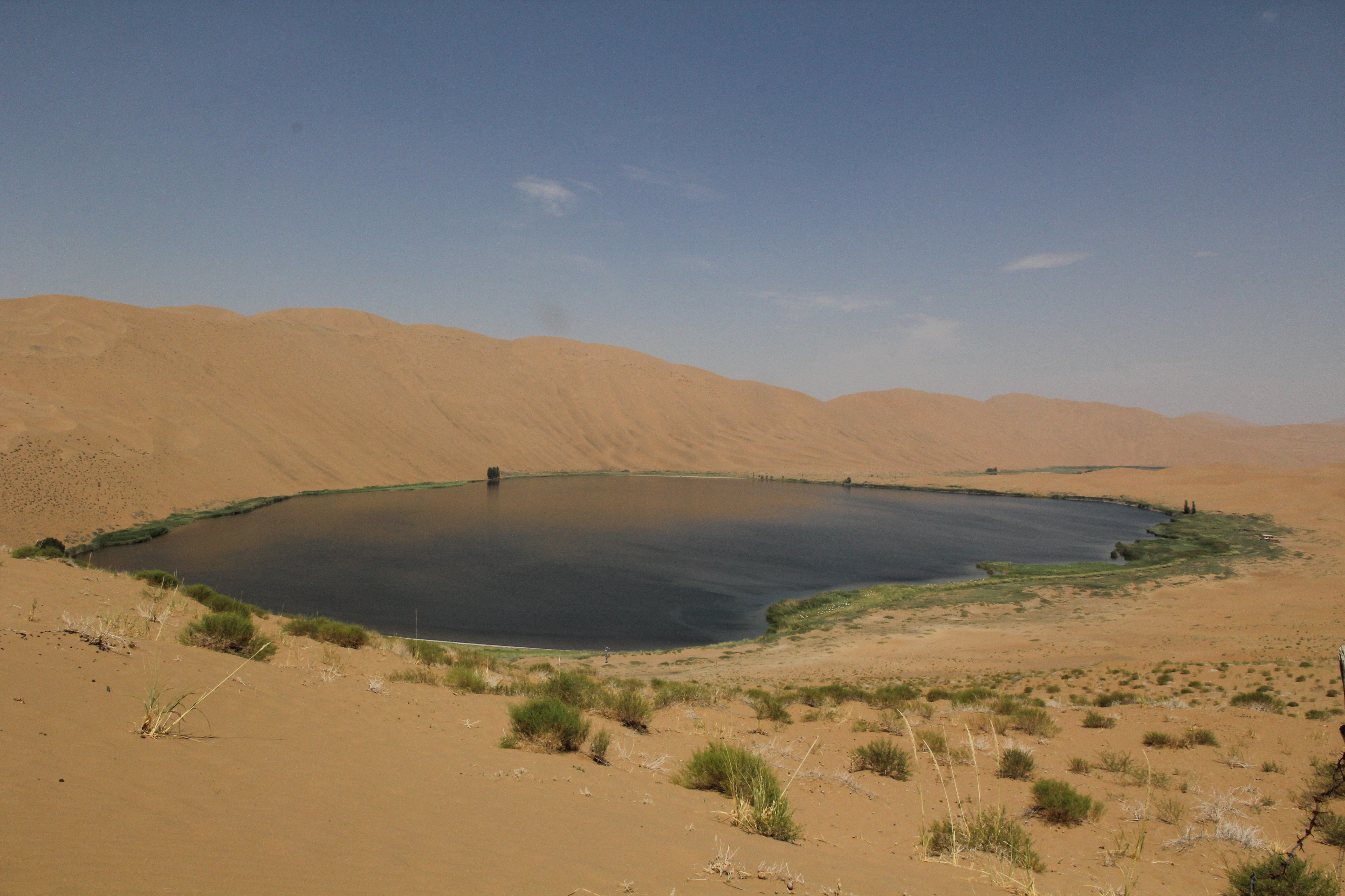 8月3日清晨,我们即向巴丹吉林沙漠腹地奔去。我们分坐2辆越野车,只几分钟的工夫,视野所及,皆是茫茫沙山。