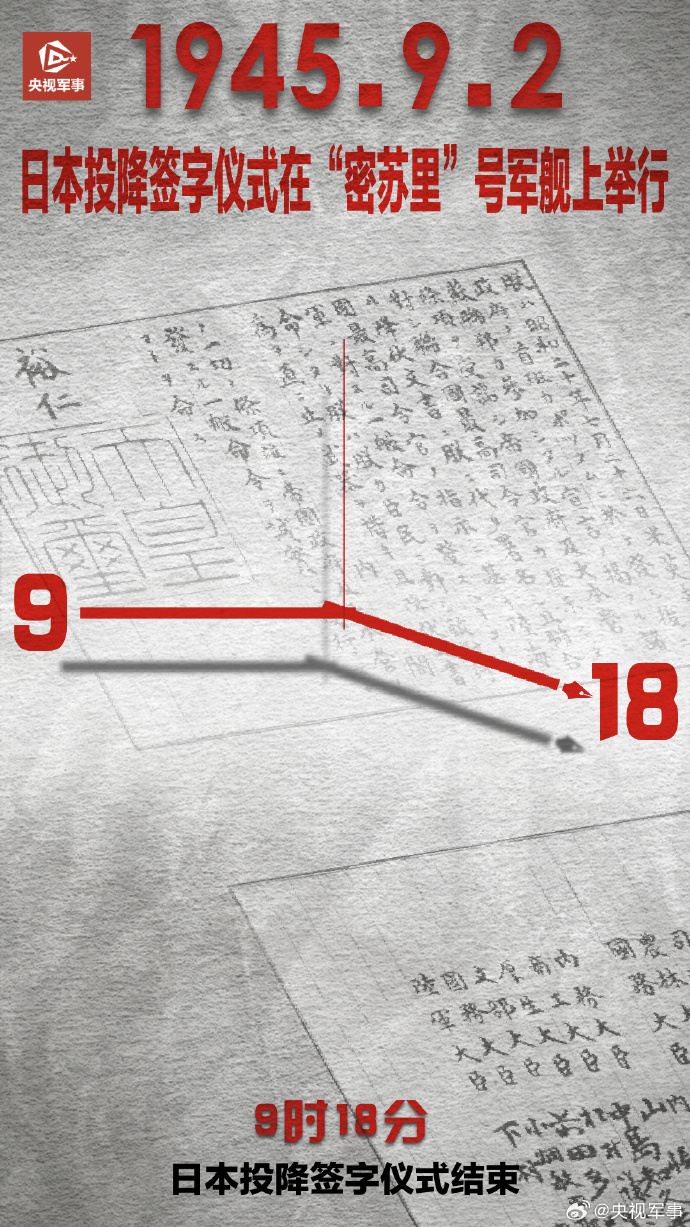 1945年9月2日,日本在“密苏里”号军舰上签署投降书。仪式结束时间恰是9时18分。1931年“九一八”事变爆发,此后,中国人民浴血奋战14年,伤亡人数超3500万……铭记历史,吾辈自强!