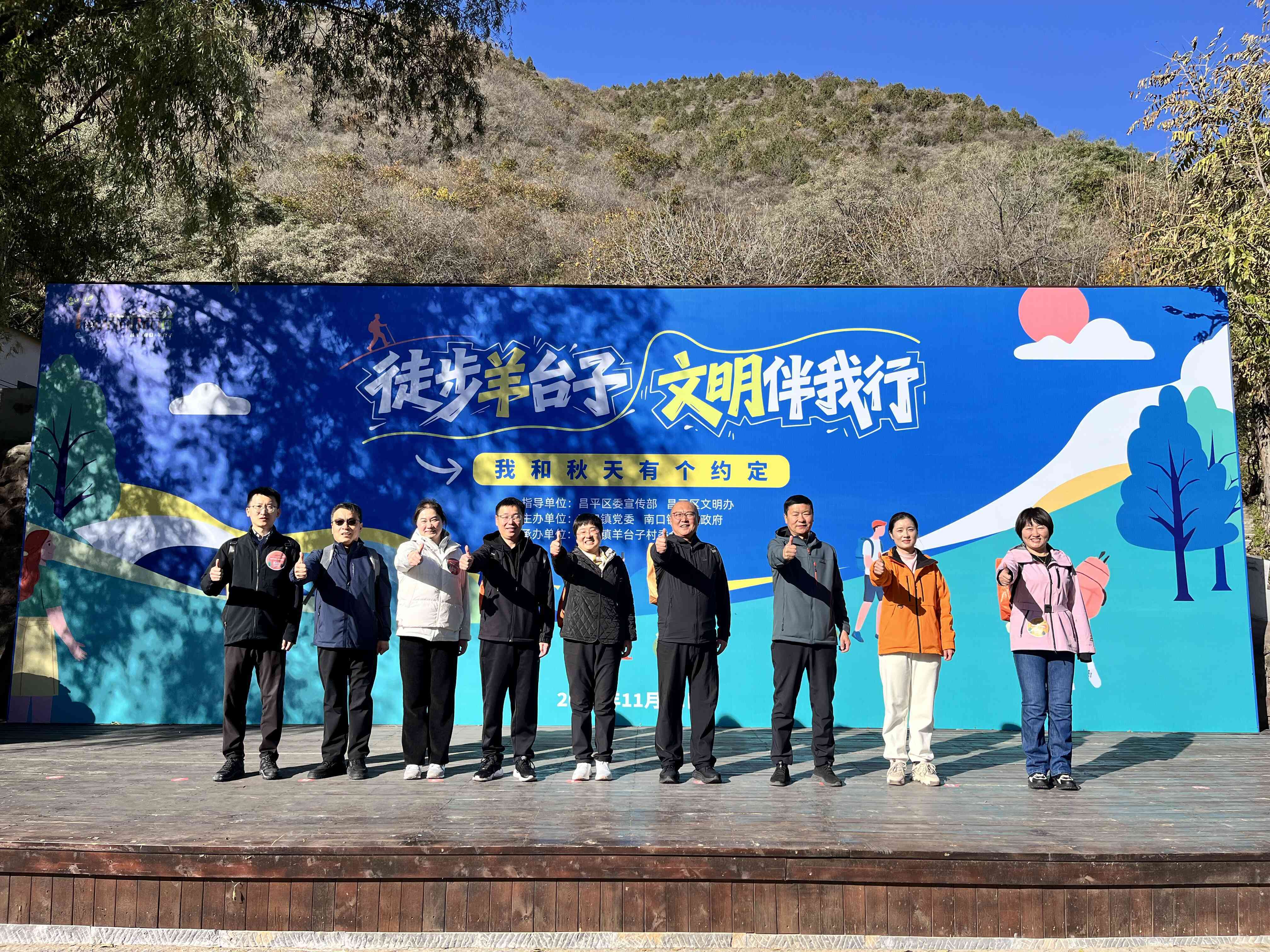 11月1日清晨,南口镇羊台子山间秋意正浓,层林尽染间,“徒步羊台子 文明伴我行——我和秋天有个约定”正式启动。热闹的开场表演点燃现场氛围,镇党委副书记李䶮龙致辞后,参与者们伴着热身操舒展筋骨,随即向着山顶进发,开启了一场文明与美景相伴的徒步之旅。