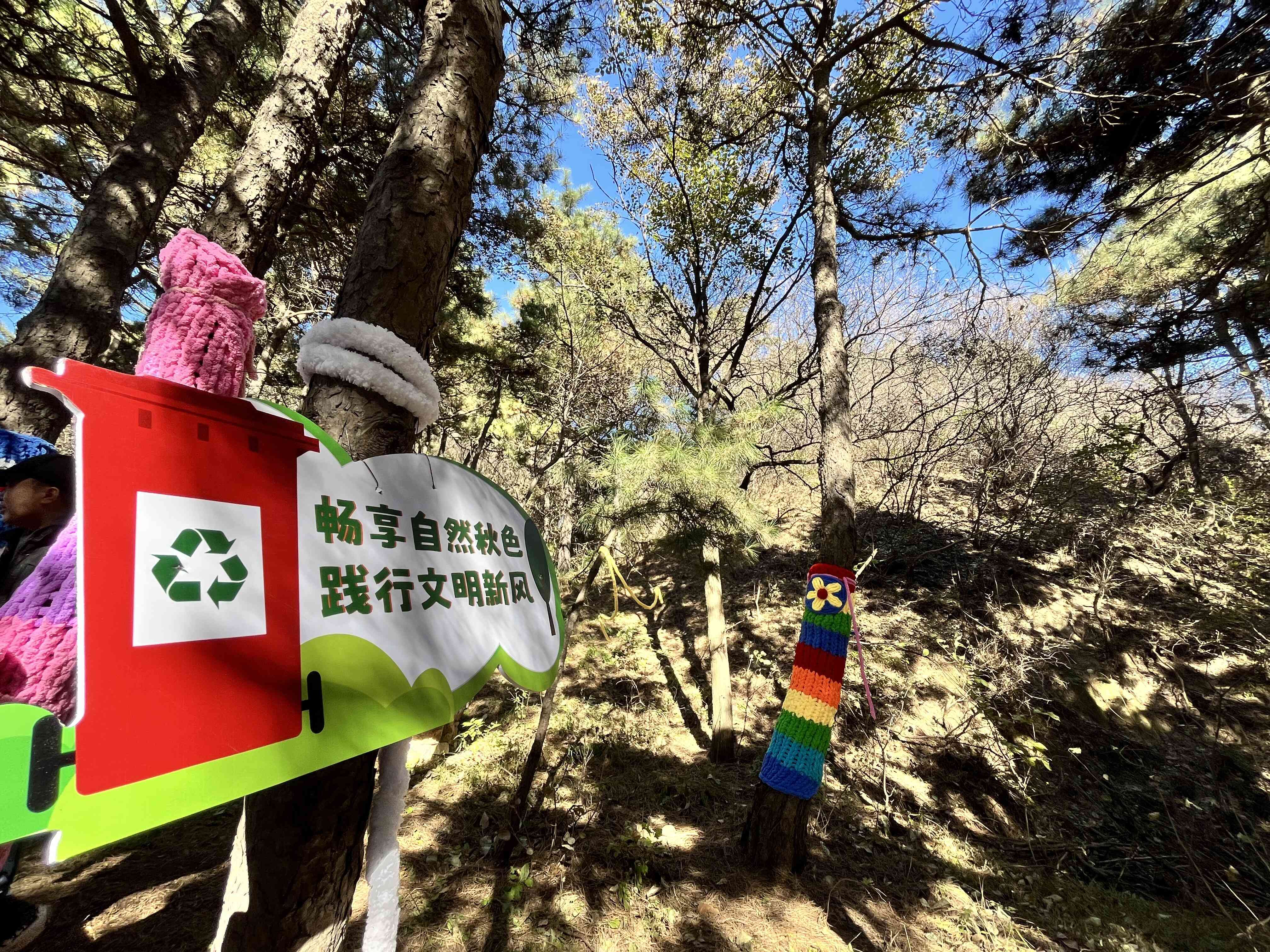 与美景交相辉映的还有沿途精心设置的文明打卡点,让自然之美与文明之风相得益彰。文明承诺墙前,大家纷纷提笔签下名字,将“文明徒步、爱护环境”的誓言落于纸面。汽车造型的垃圾分类宣传点前,趣味的内容与图画让环保理念深入人心。身着创意“彩色毛衣”的大树旁,参与者们驻足打卡,定格文明与自然交融的瞬间。