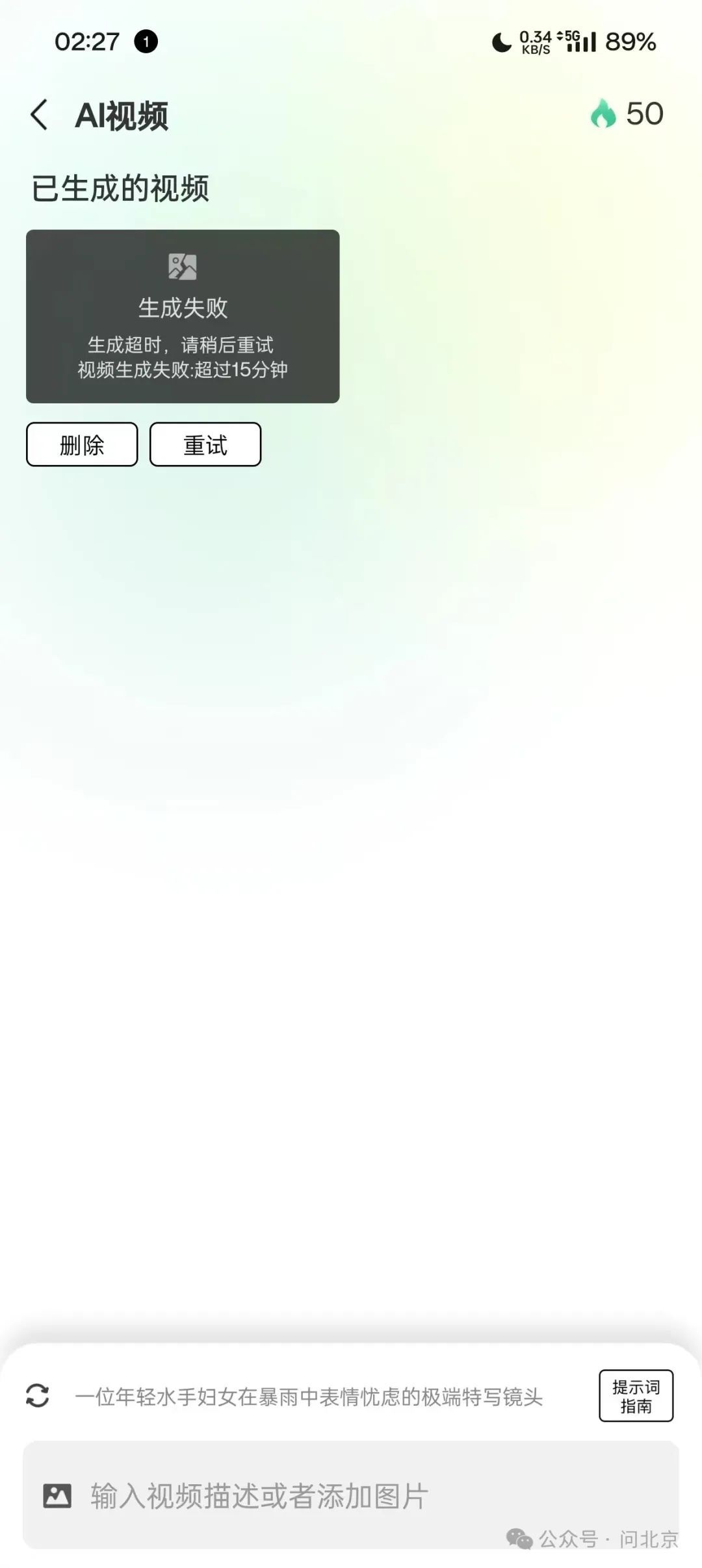 王先生在凌晨两点零三分下达指令,两点二十七分显示视频生成失败/受访者供