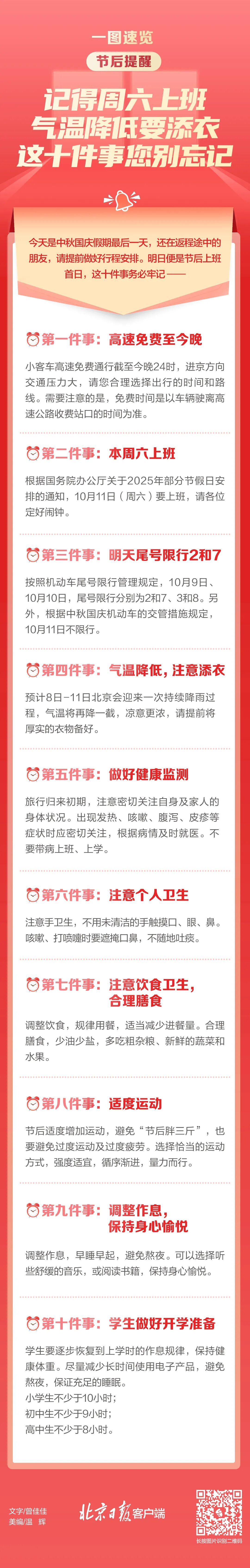 节后提醒:记得周六上班,气温降低要添衣,这十件事您别忘记!