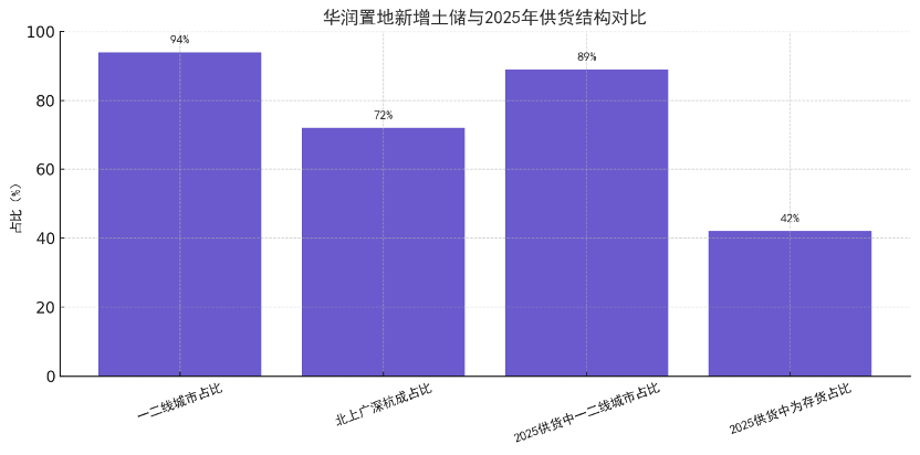 投资端,华润置地延续深耕策略。据年报,2024年新增土储393万平方米,权益投资526亿元,一二线城市占比94%,北上广深杭成占比72%。截至年底,总土储5194万平方米,已售未结签约额2319.7亿元,其中1934.7亿元预计2025年结算。管理层在业绩会上表示,2025年供货5009亿元,89%集中于一二线城市,42%为存货。