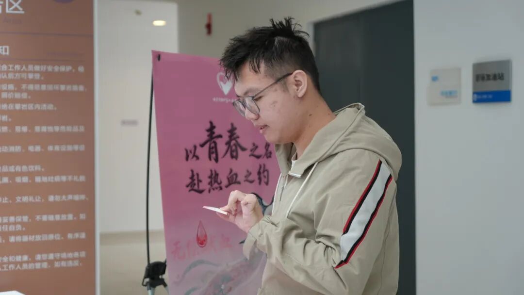 前来参与的师生络绎不绝,一张张年轻的脸庞满是热忱,一个个坚定的身影彰显担当。参与师生自觉排队、主动配合,在工作人员的指引下,有条不紊完成信息登记、血压测量、血型检测、血常规筛查等前期检查,符合条件的师生有序进入采血环节。采血过程中,医护人员全程关注献血者身体状态,细致叮嘱献血后注意事项,用专业与温情为献血师生保驾护航。此外,我中心为成功献血的师生精心准备了互动答题环节和专属纪念品,既传递了对献血者的敬意与感谢,也进一步普及无偿献血知识,让公益温暖更有温度