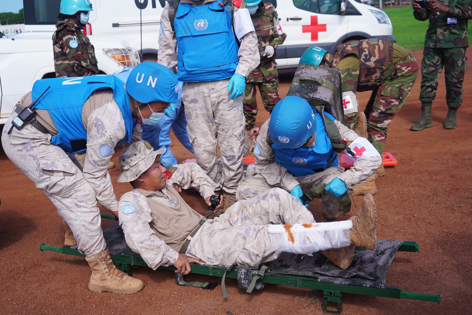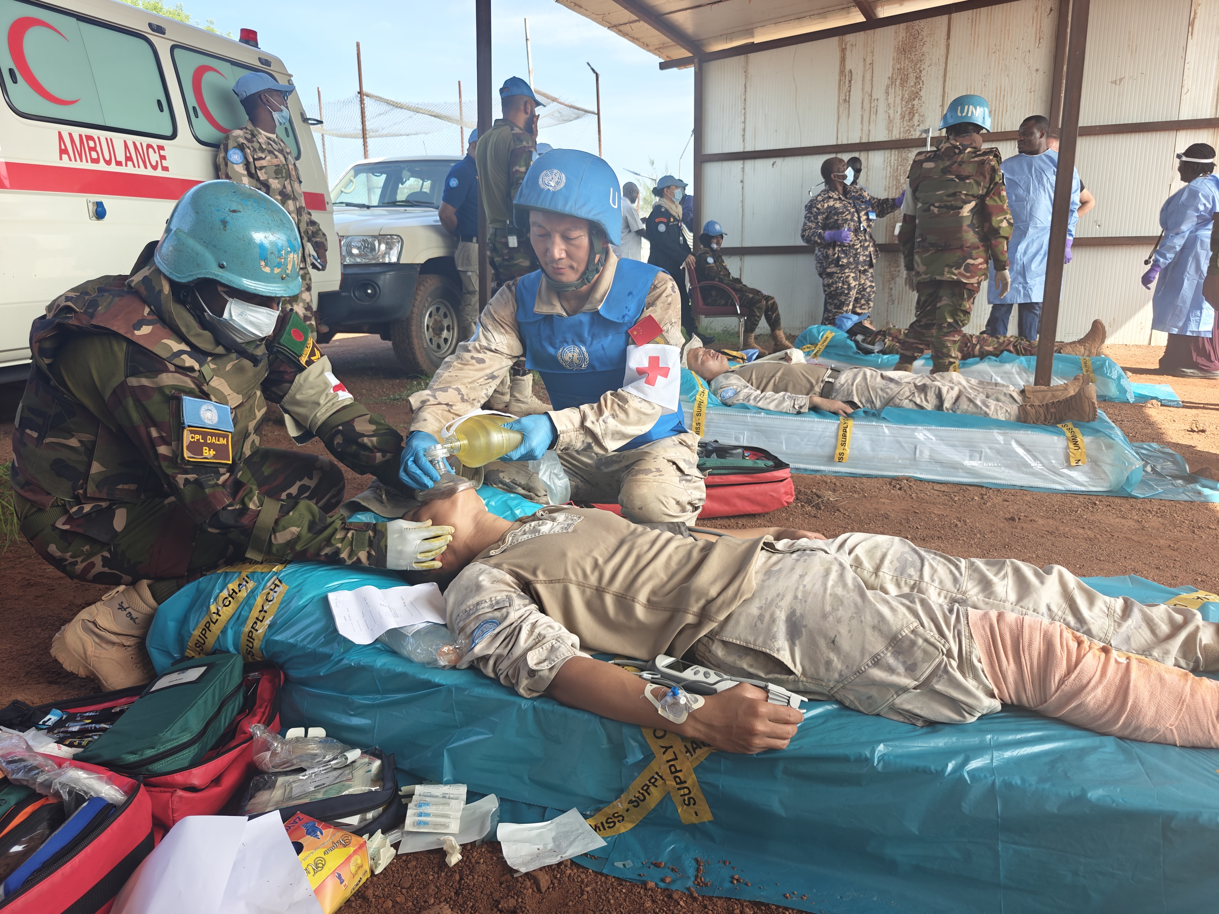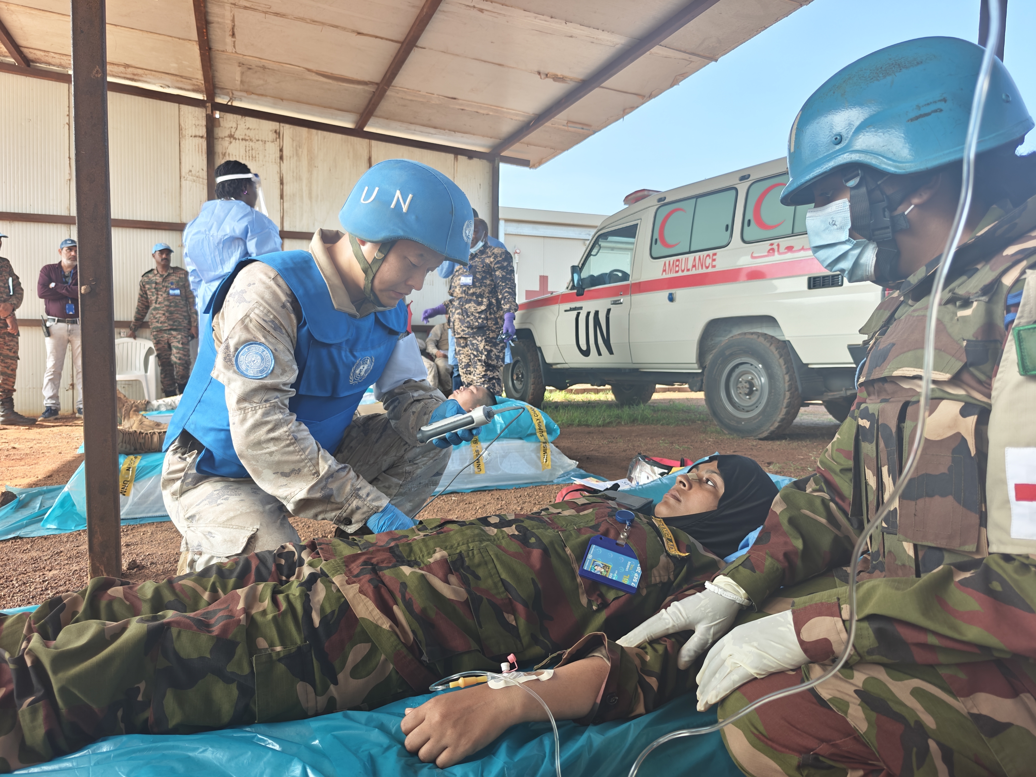 为强化维和行动中的医疗救援协作能力。近日,中国第15批赴南苏丹(科瓦乔克)维和工兵分队与联南苏团多部门联合开展伤员救治实战化演练,重点检验战场急救、伤员转运及联合救治流程,进一步提升了任务区应急医疗响应水平。