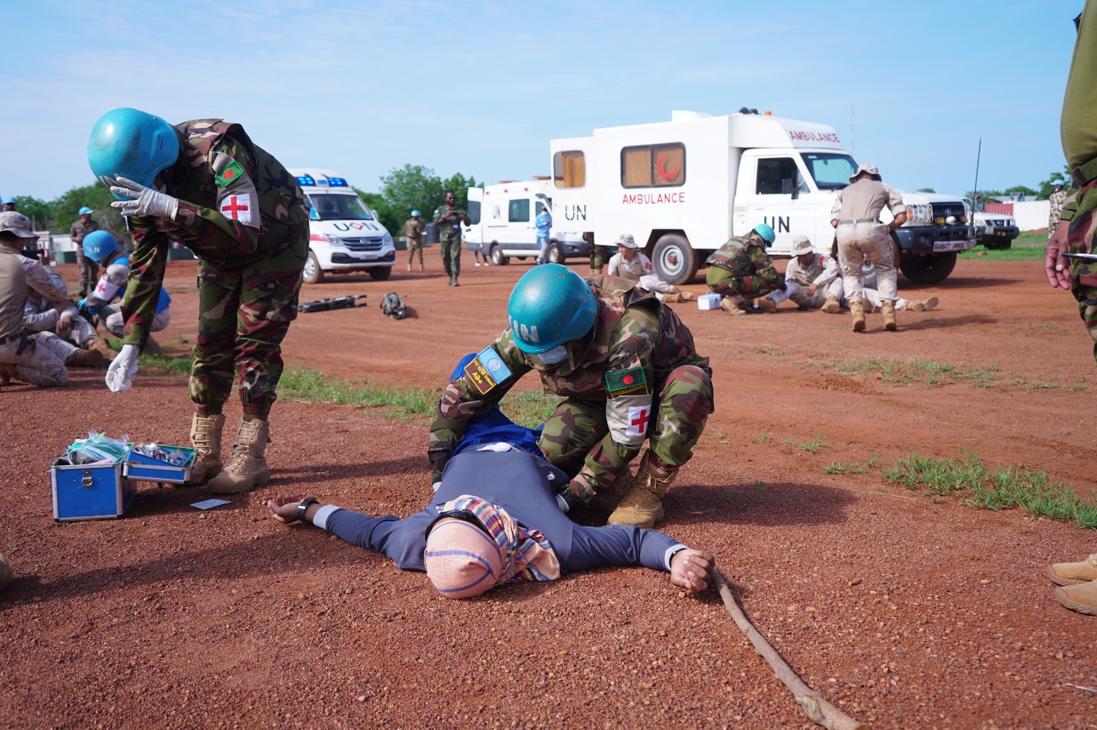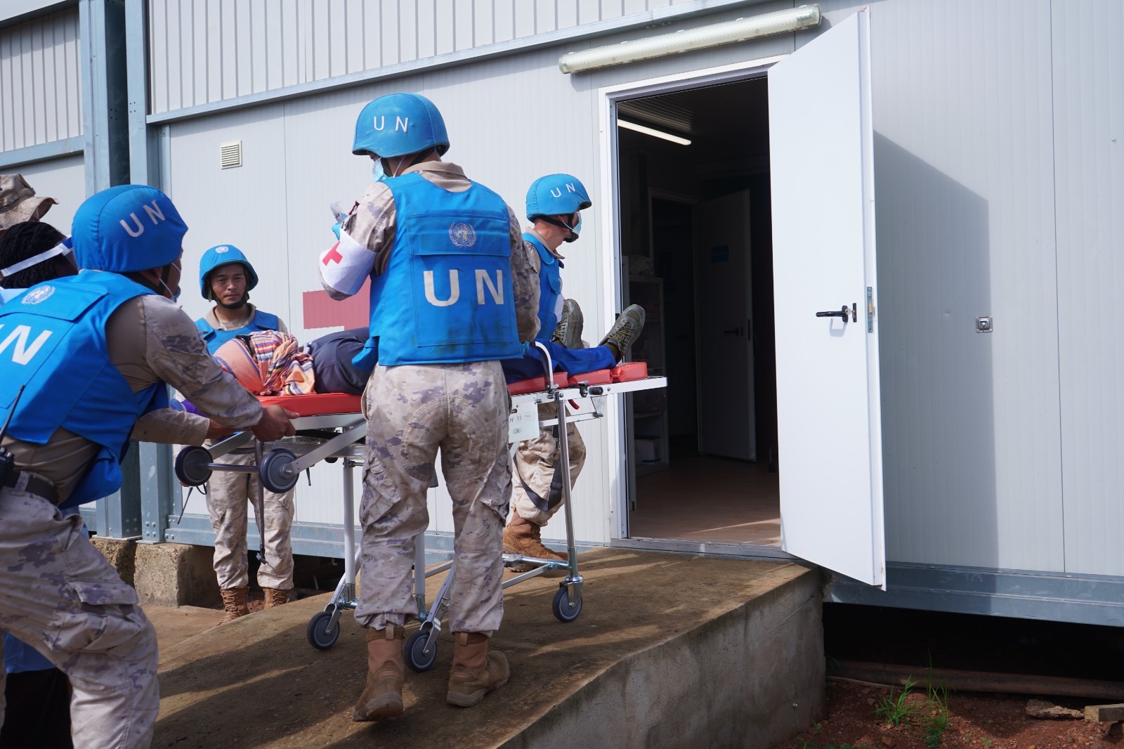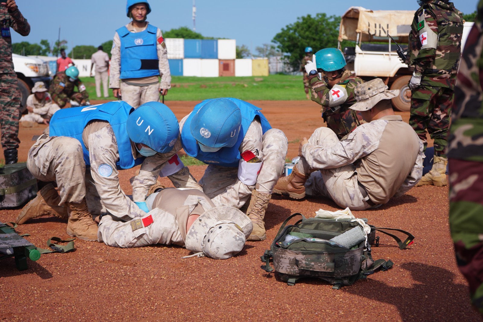 为强化维和行动中的医疗救援协作能力。近日,中国第15批赴南苏丹(科瓦乔克)维和工兵分队与联南苏团多部门联合开展伤员救治实战化演练,重点检验战场急救、伤员转运及联合救治流程,进一步提升了任务区应急医疗响应水平。