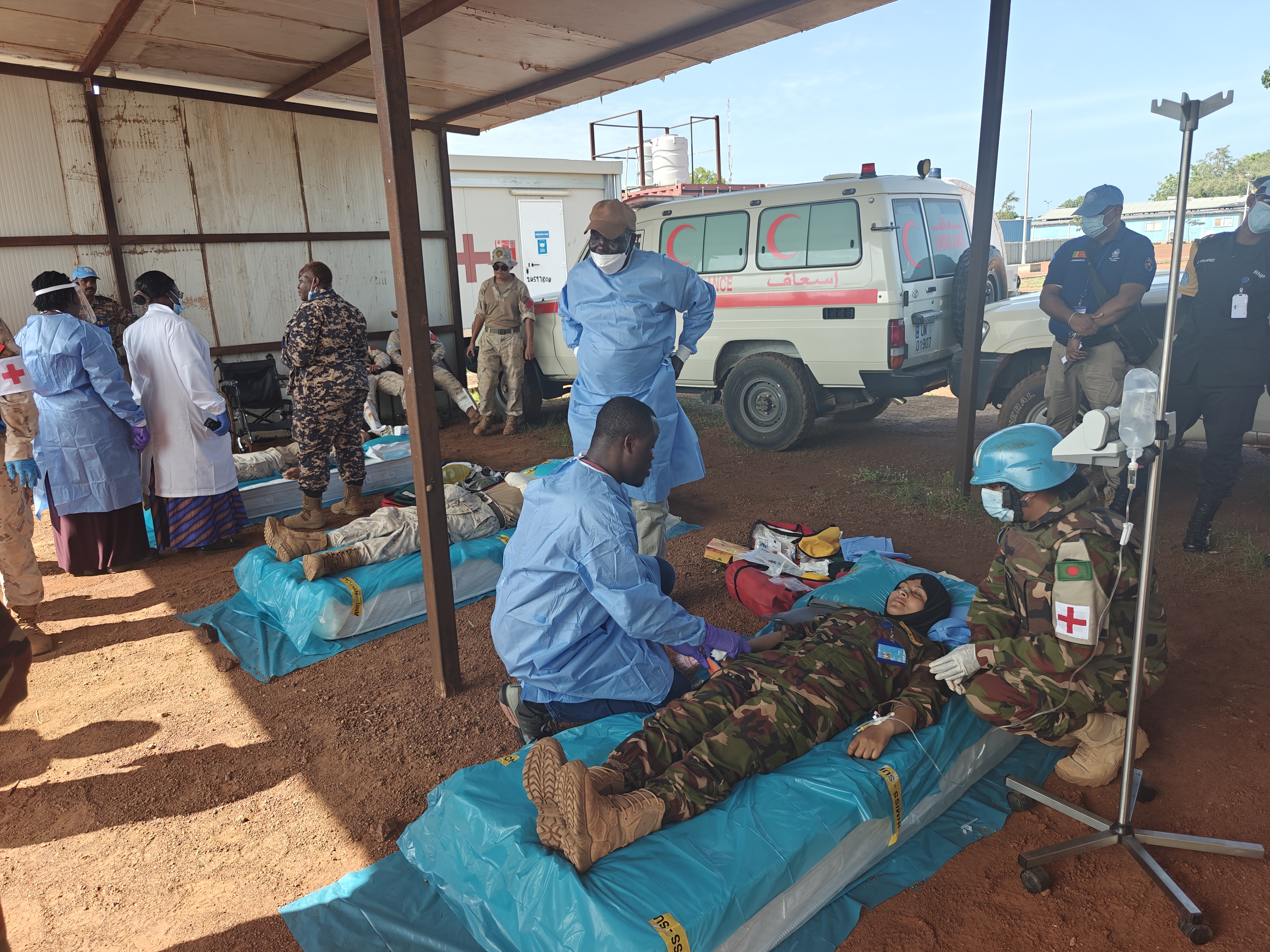 演练以模拟突发武装冲突为背景,涵盖紧急部署、武力对抗、平民保护和伤员救治的全过程。参演部队由中国维和工兵分队一级医院、孟加拉维和步兵营、联合国警察、军事联络官小组、人权部门、民政事务部门组成,中国维和官兵凭借精湛的战术素养和医疗说平,赢得各方高度评价。