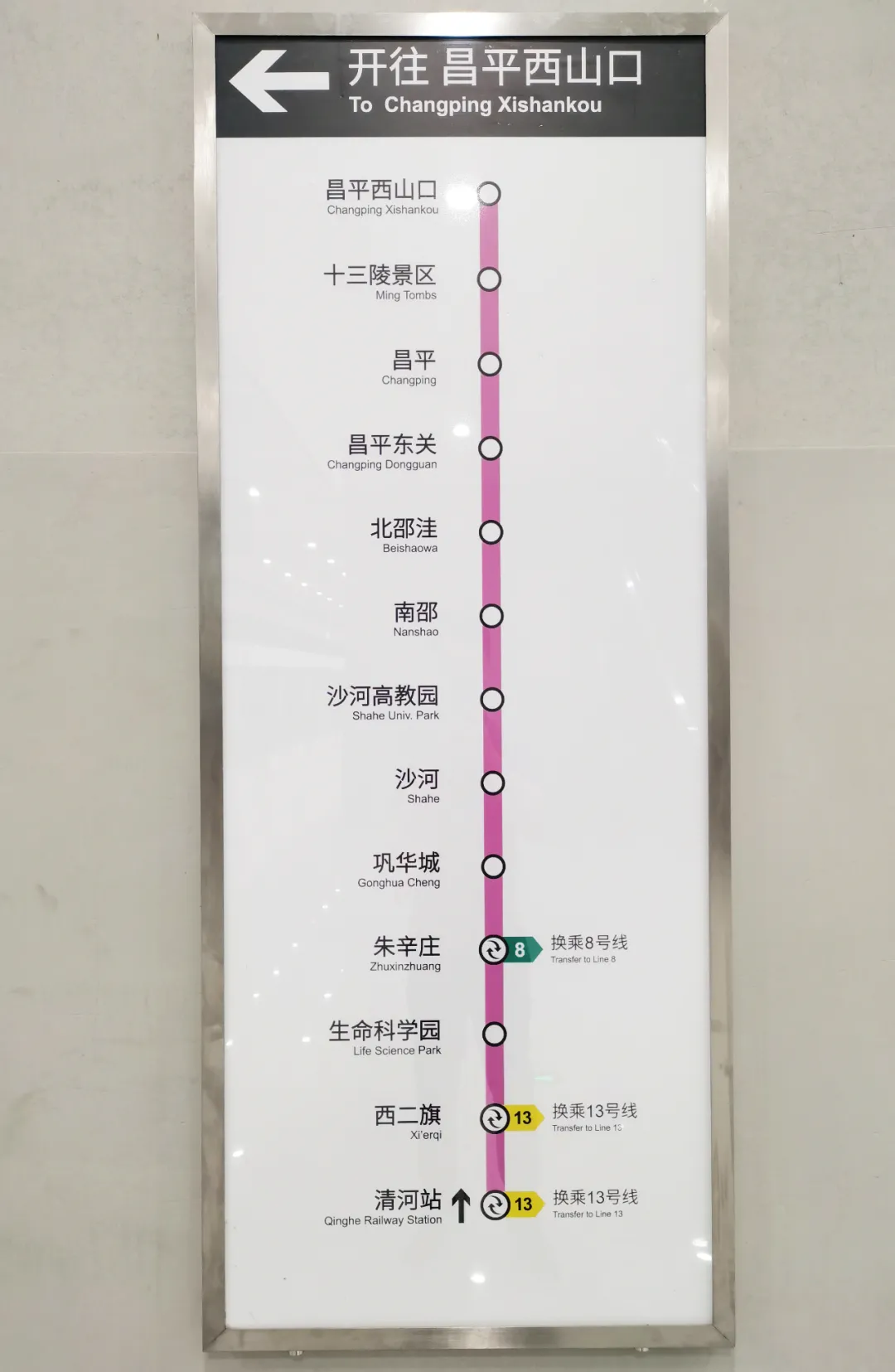 各类指示标识已基本安装完成,粉红色调的昌平线标识十分醒目。