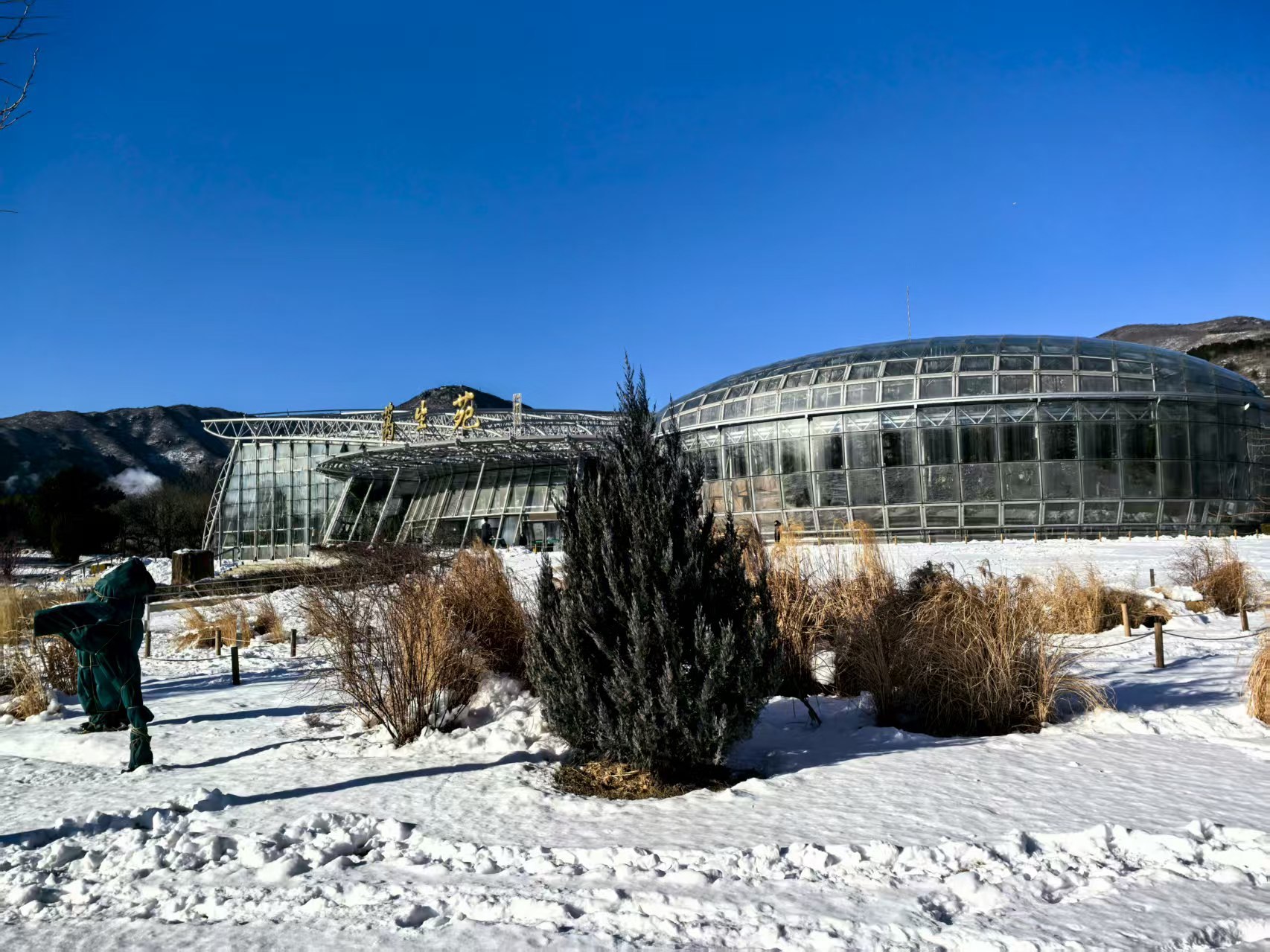 国家植物园对温室周边草坪区域、科普馆西侧郁金香展区的积雪主要采取平铺的方式,为植物根部保温;门区、树木区等高大乔木为主区域则主要采取堆积的方式,将积雪堆在树木周边,既避免积雪堆积影响游客通行,又能让积雪在树木根部缓慢融化,改善土壤墒情。