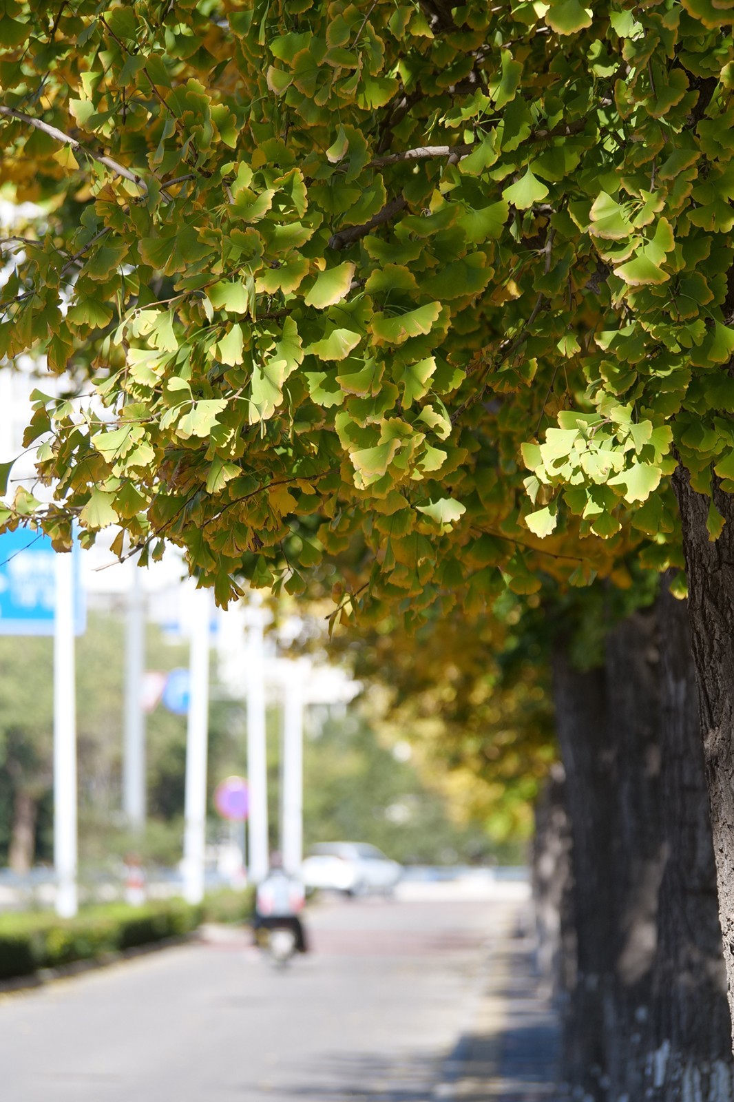 立于银杏树下,仰头望去,阳光透过枝叶,洒下斑驳的光影。风起时,叶片三三两两,翩跹而下。