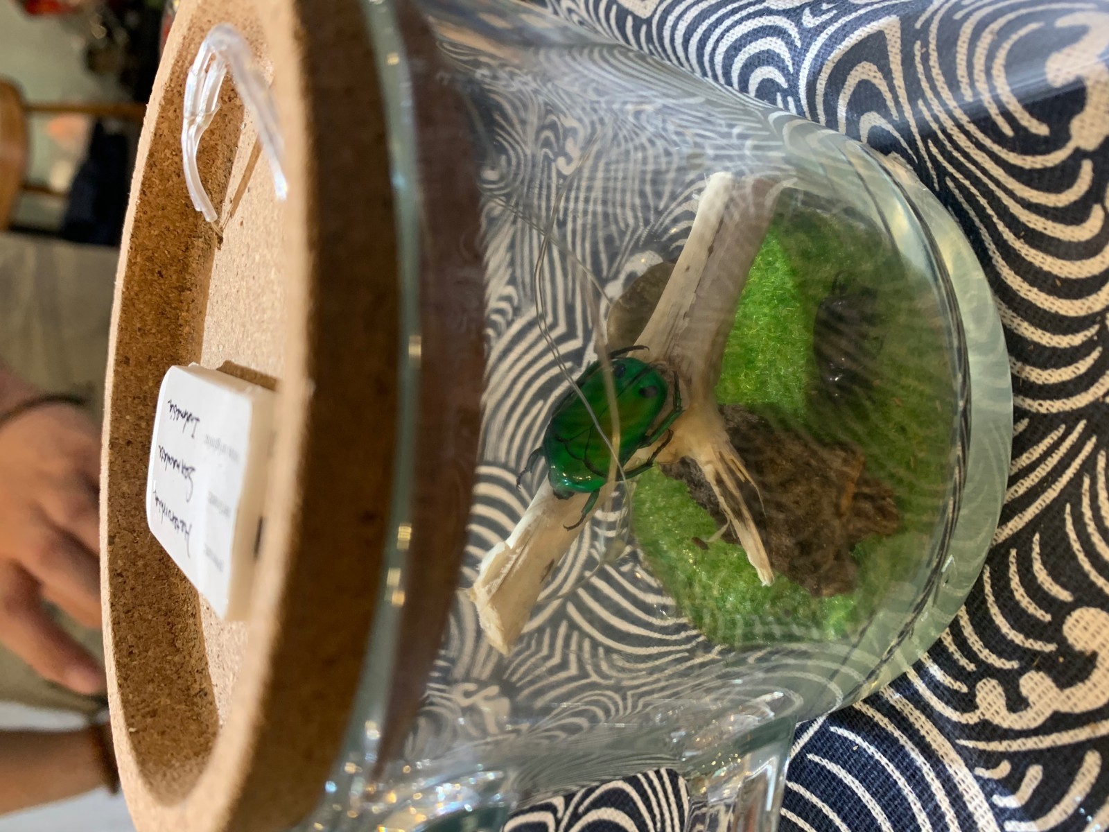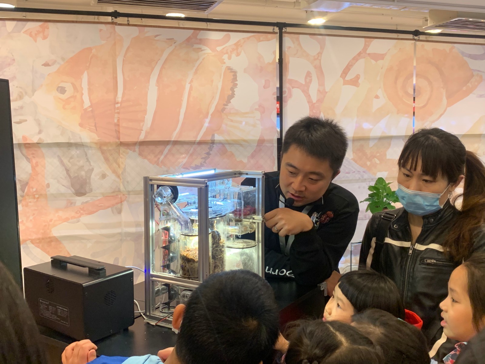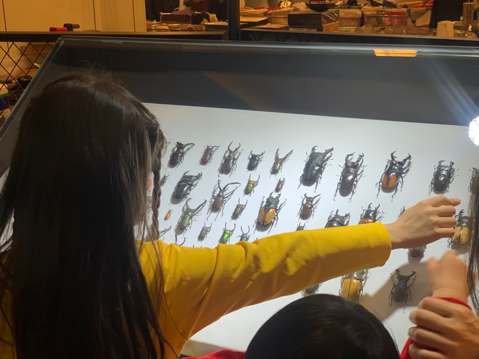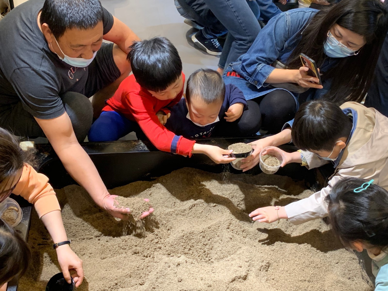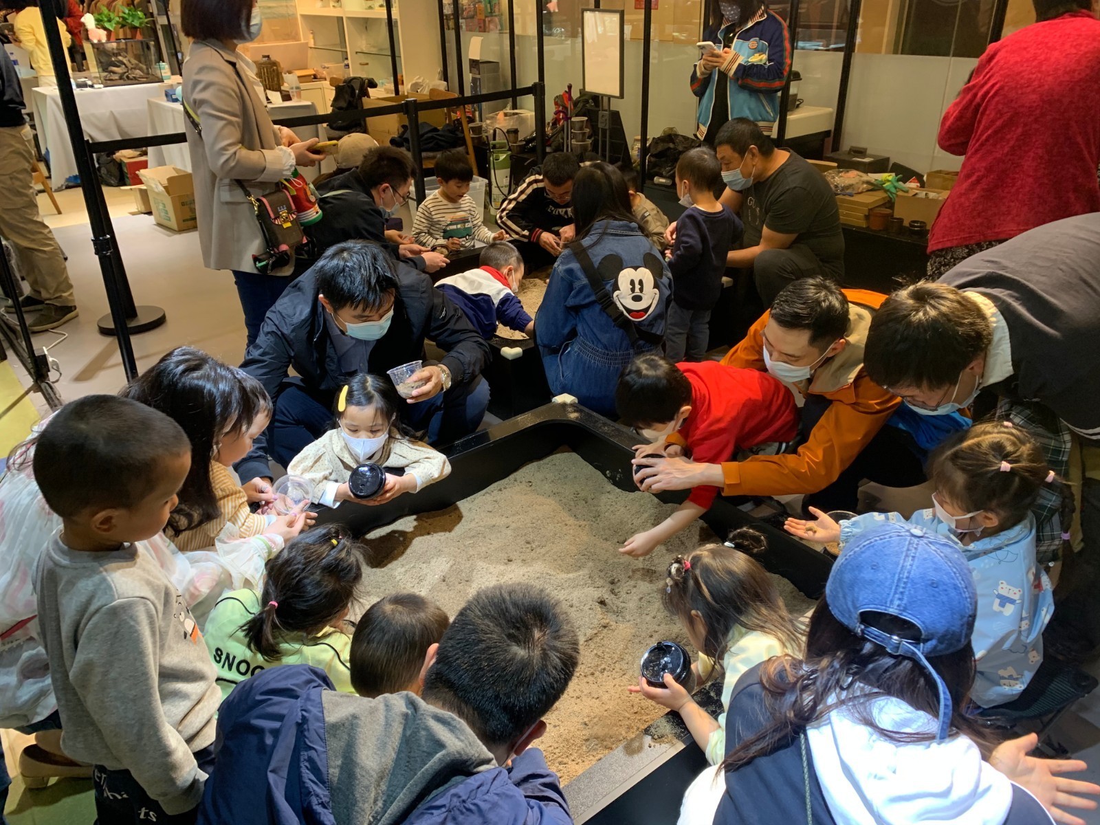 除此之外,现场还有神秘的深度互动体验区。该区域内设模拟昆虫野外生存沙坑装置,让孩子可现场挖掘神秘甲虫幼虫,实现观赏、探索、互动为一体的深度体验。如果有兴趣,还可以亲自照顾一只小甲虫幼虫,亲眼观察他从幼虫,到化蛹,再到羽化的这一神奇的完全变态发育过程,了解世间万物的奇特。