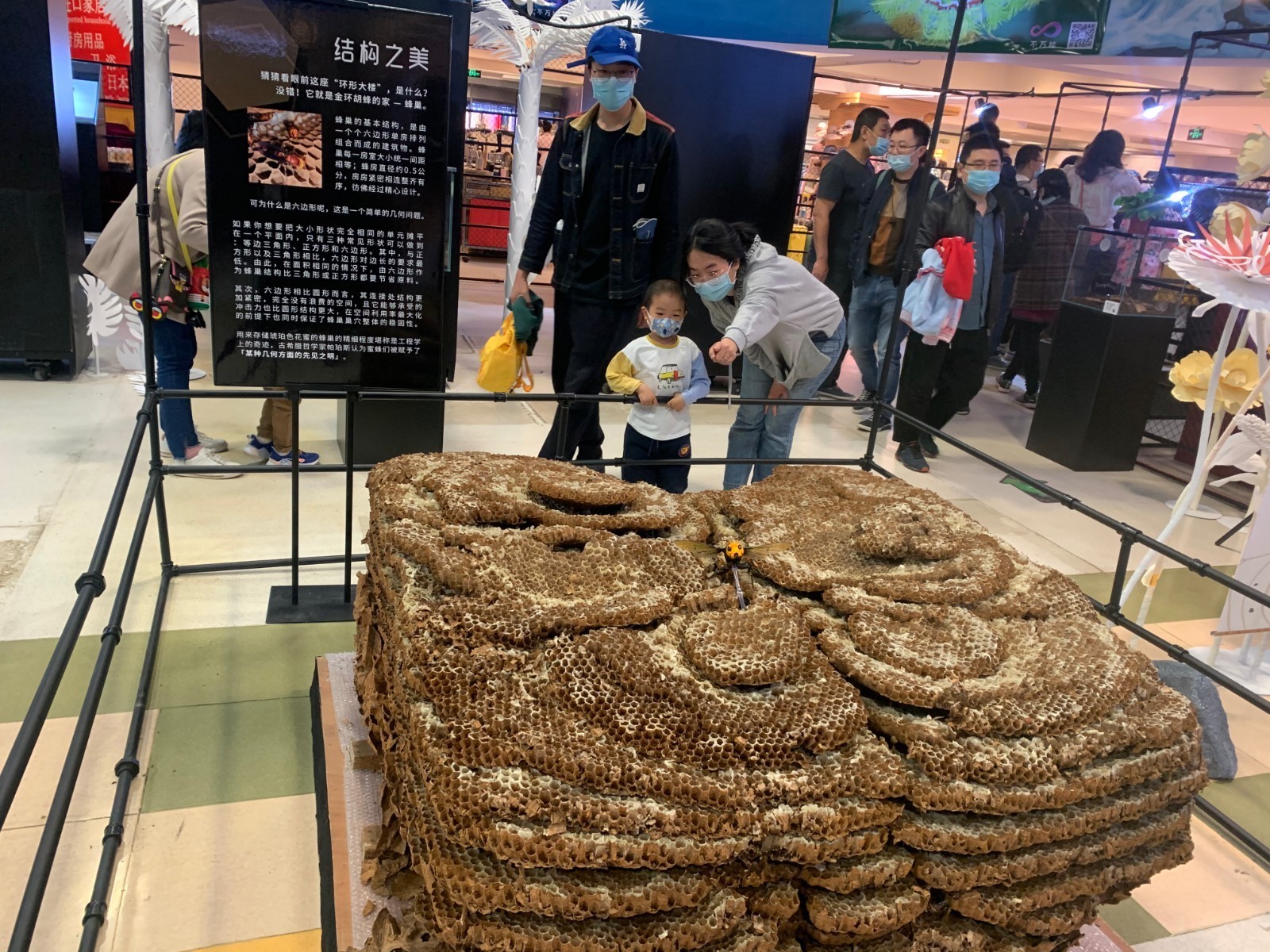 身材魁梧、力量感十足的“大甲虫”;绚丽多彩、设计感爆表的“金龟子”;体型修长、伪装力惊人的“大蚂蚱”等。还包含了许多“奇观”的亮点展项,如享有“杀人蜂”威名的金环胡蜂巨型巢穴;被称之为“生物水泥”美誉的象白蚁巢穴;放大几百倍原色细节呈现的昆虫之美的微观摄影,以上都是不可复制的特别惊喜。