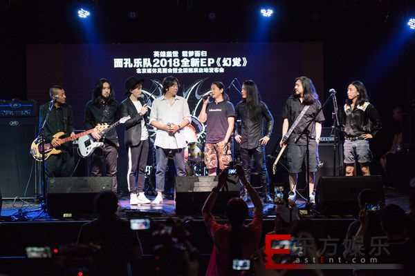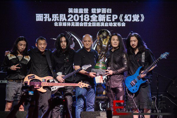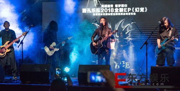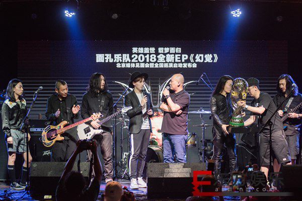 面孔乐队成军二十八年,是中国最具影响力的流行金属硬摇滚乐队。面孔乐队不仅资历深,人缘更是出了名的好。活动现场面孔乐队的圈内好友文章、宋佳、郭涛、孙楠、萨顶顶、谭维维、谢天笑等都通过VCR为面孔乐队2018全新EP《幻觉》送上诚挚的祝福。