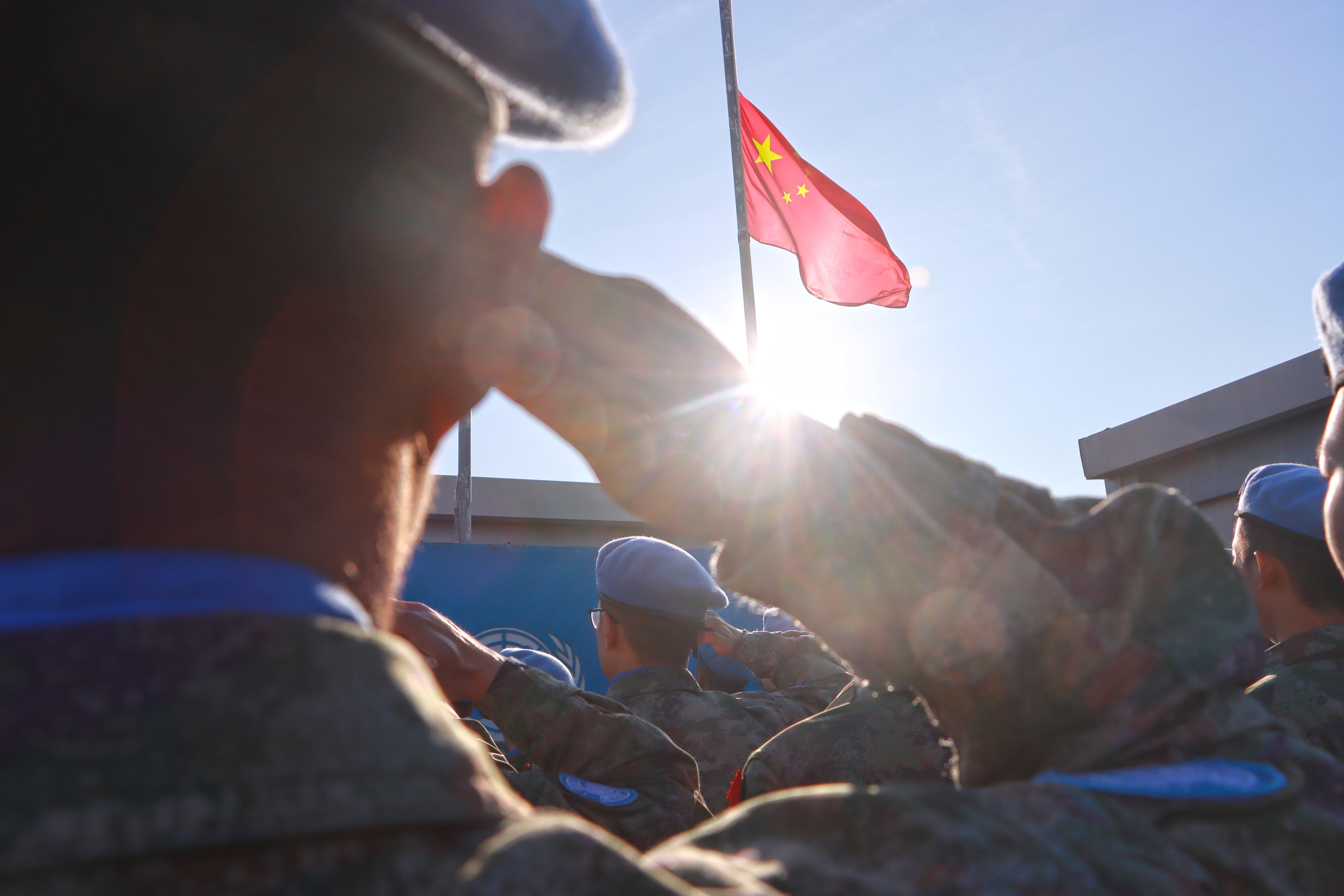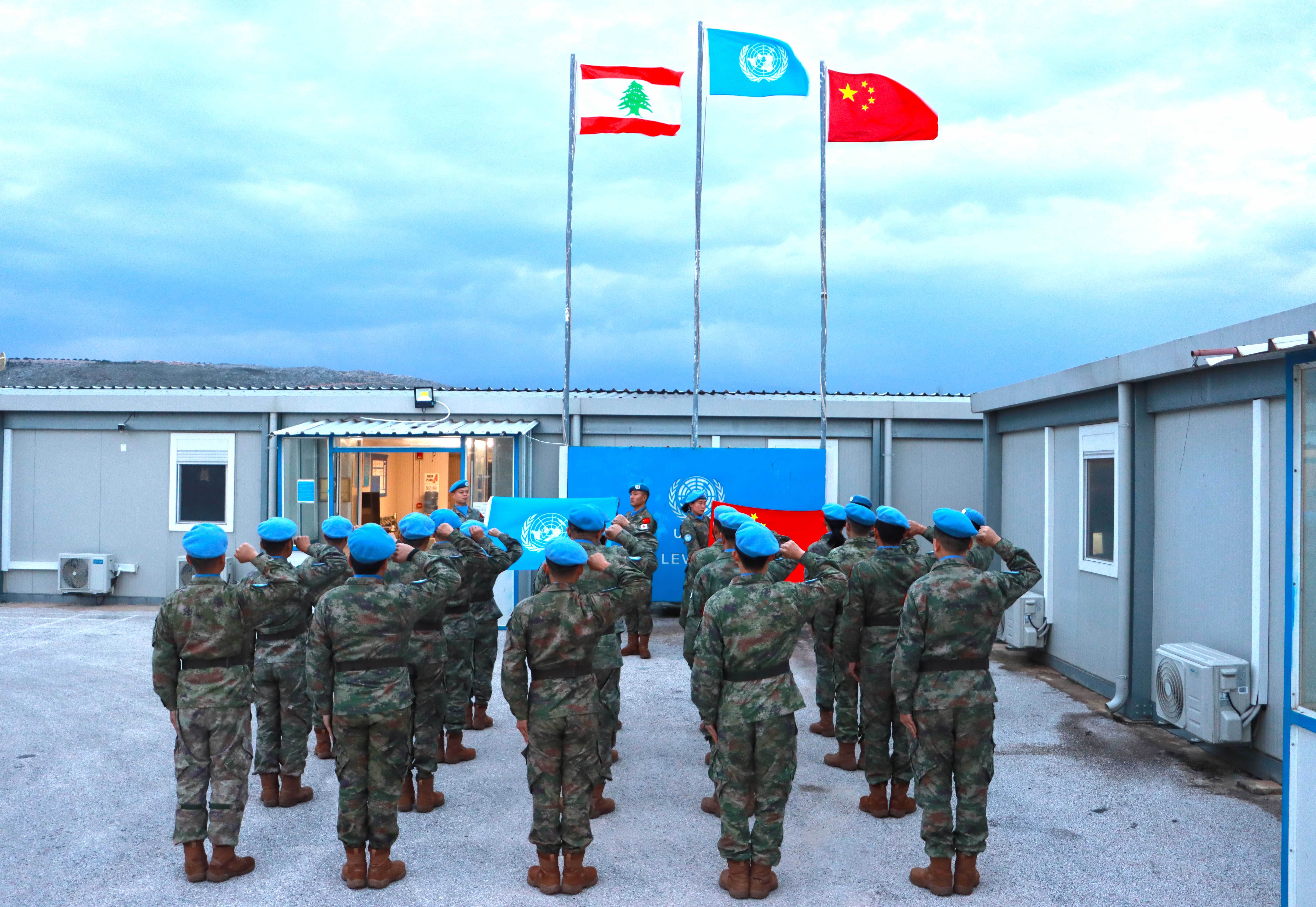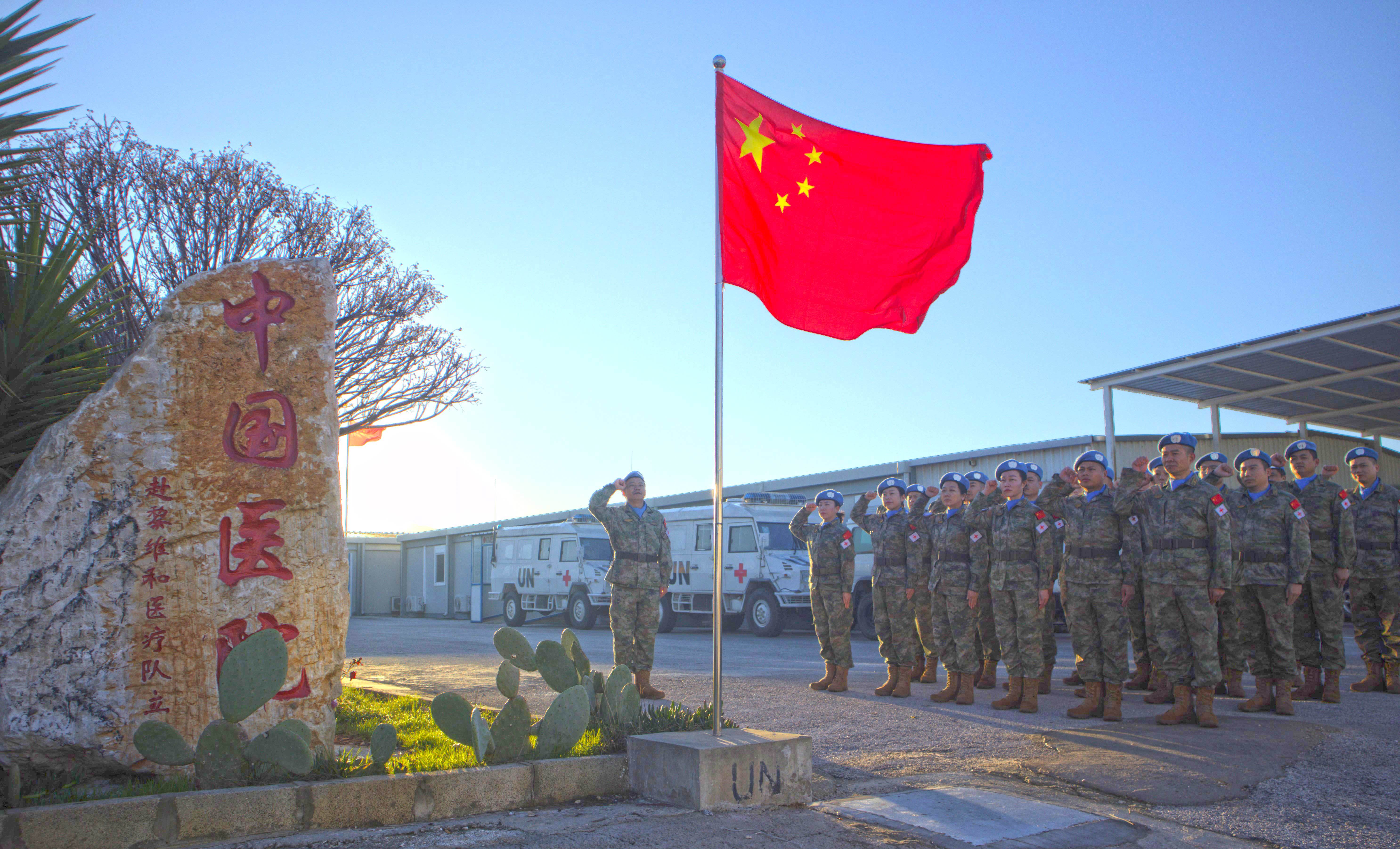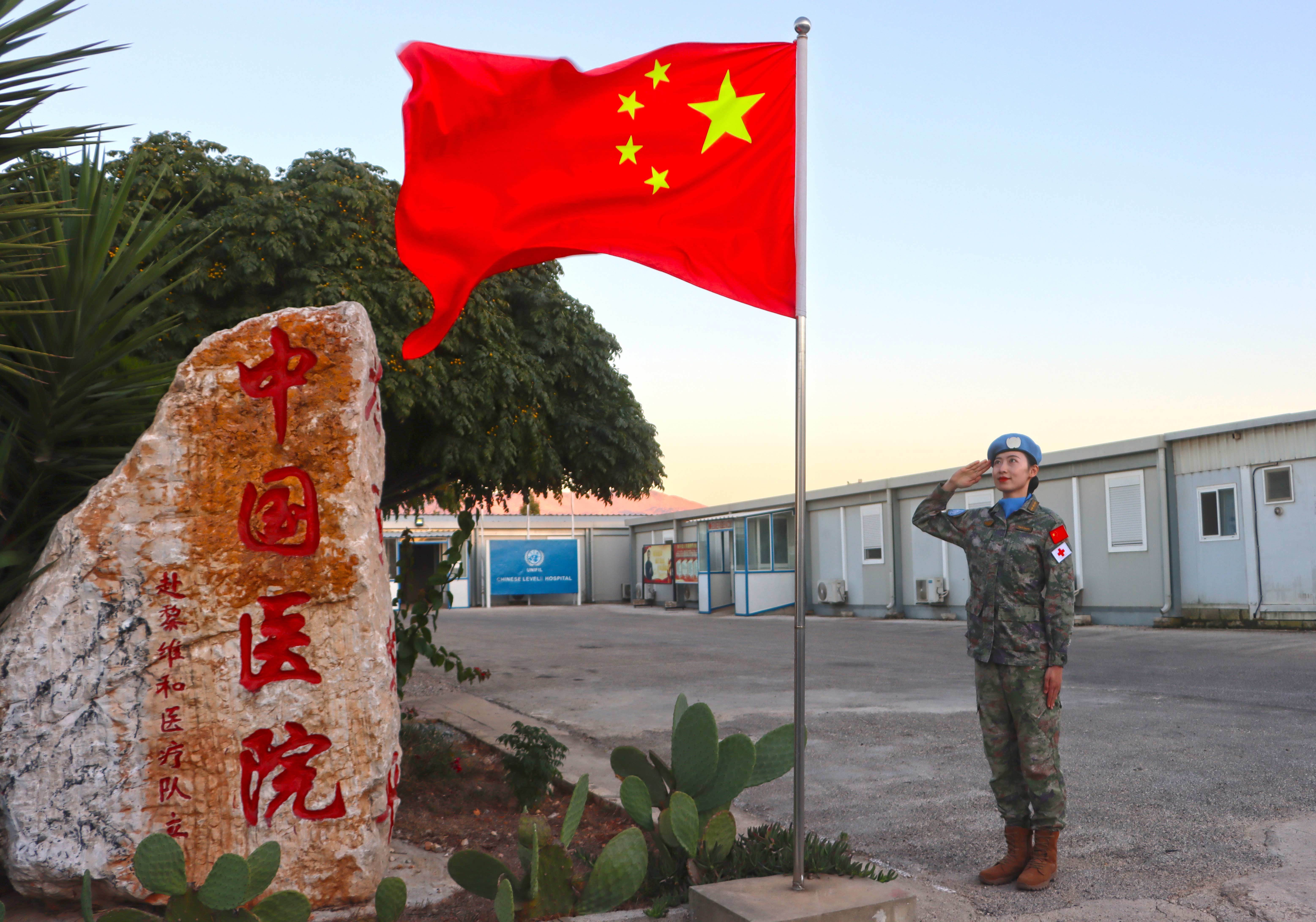 6时许,中国第22批赴黎维和医疗分队在营区组织升旗仪式,在雄壮的国歌声中,维和官兵头戴蓝色贝雷帽、胸围蓝色丝巾、肩佩蓝色联合国徽章,整齐列队、军姿挺拔,面对国旗庄严敬礼,表达对祖国的美好祝愿和完成任务的坚定决心。