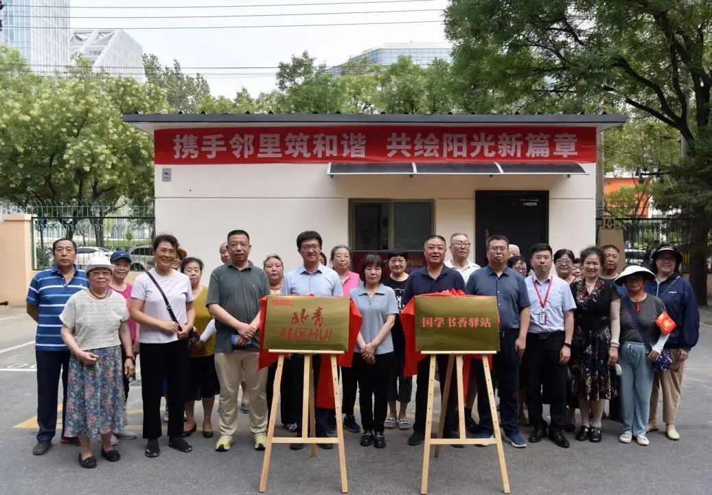 “3、2、1,揭幕!”伴随着欢快的乐曲和热烈的掌声,红色幕布被徐徐揭开,印有“北青社区HUI”和“国学书香驿站”的金色牌匾在阳光下熠熠生辉。7月9日,这个备受居民关注的社区空间,在众人的瞩目中正式揭牌投用。