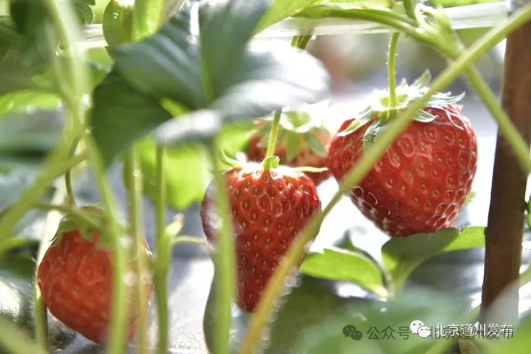果香四溢、暖意融融,走进位于宋庄镇兴榆路附近的玉明草莓采摘园里,草莓甘甜的香气扑鼻而来。