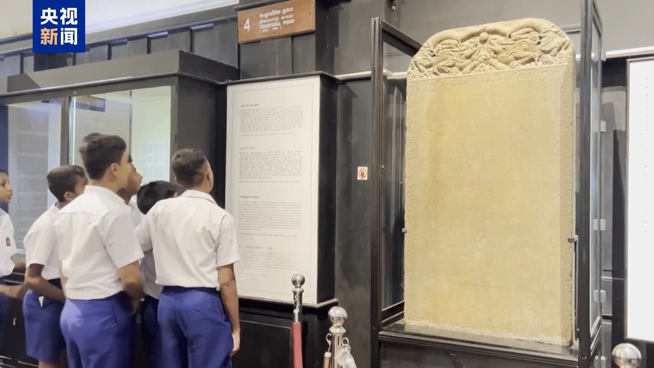 《布施锡兰山佛寺碑》最初刻制于南京龙江宝船厂,郑和第3次远航时把它带到了锡兰山,也就是今天的斯里兰卡。这也是全球唯一发现的一块刻有中文、泰米尔文和波斯文的三种文字的石碑,也展现了海上丝绸之路的文化交流交融。