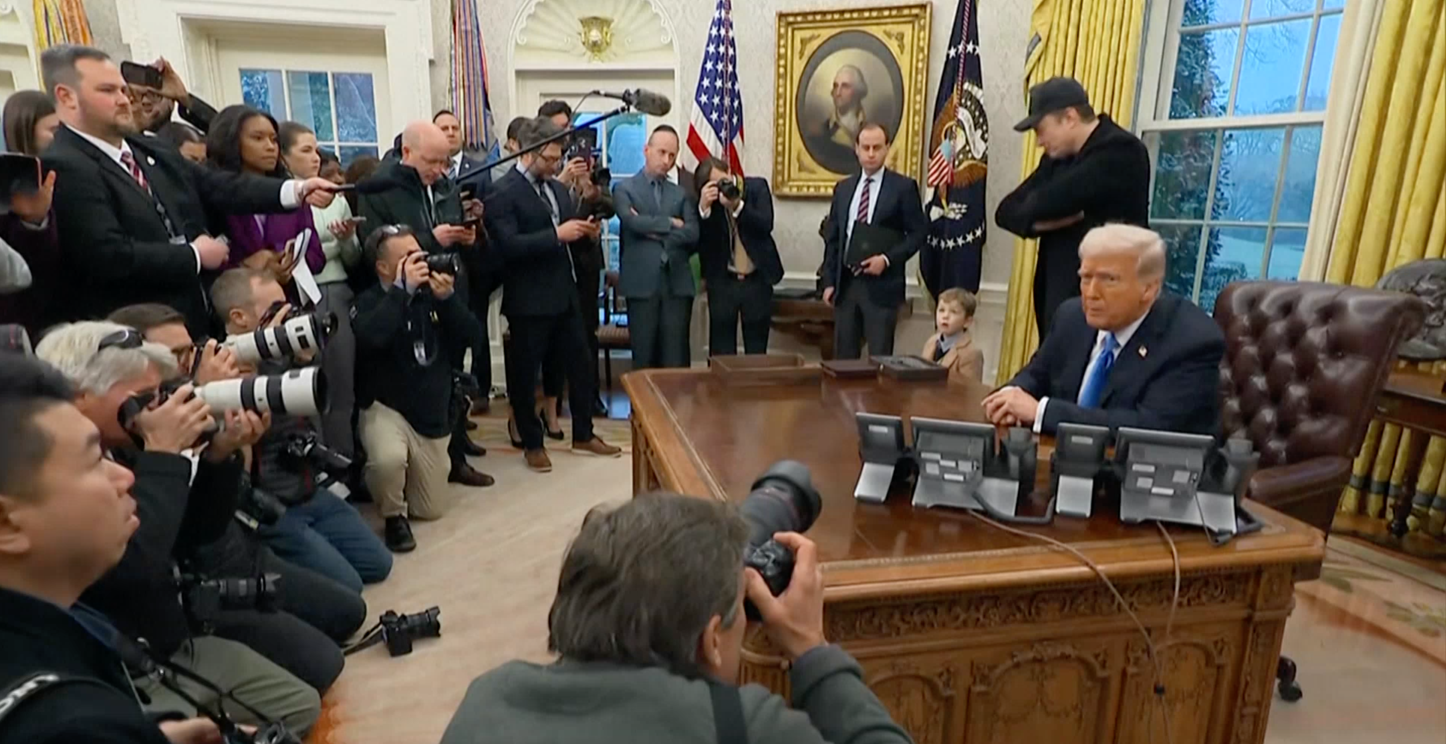 11号,马斯克带着自己的儿子,与特朗普在白宫椭圆形办公室接受记者采访。特朗普表示,他签署的新行政令将赋予马斯克对联邦劳动力的更多权力。根据白宫发布的声明,新行政令指示各个联邦机构与政府效率部协调推动大规模裁员并限制招聘。