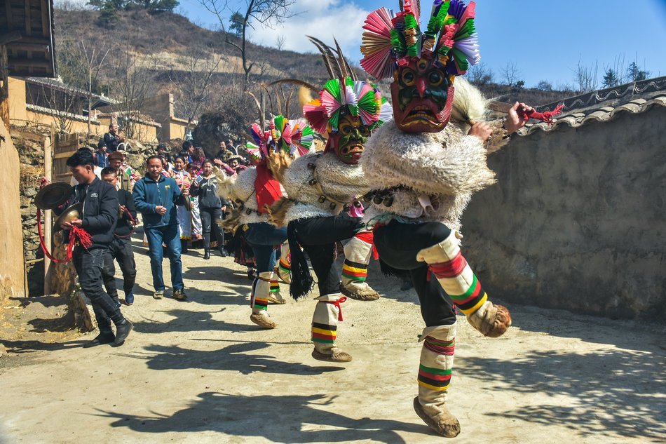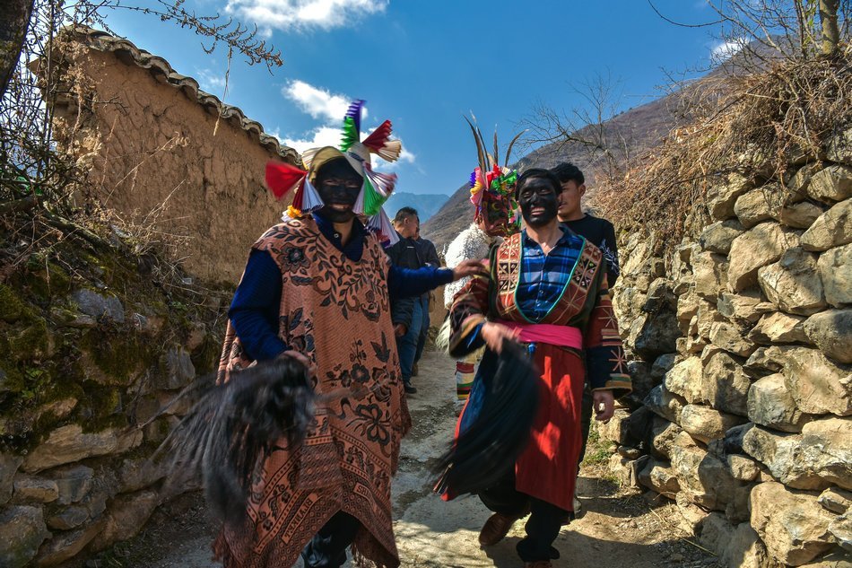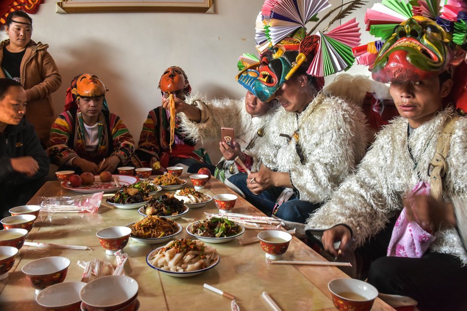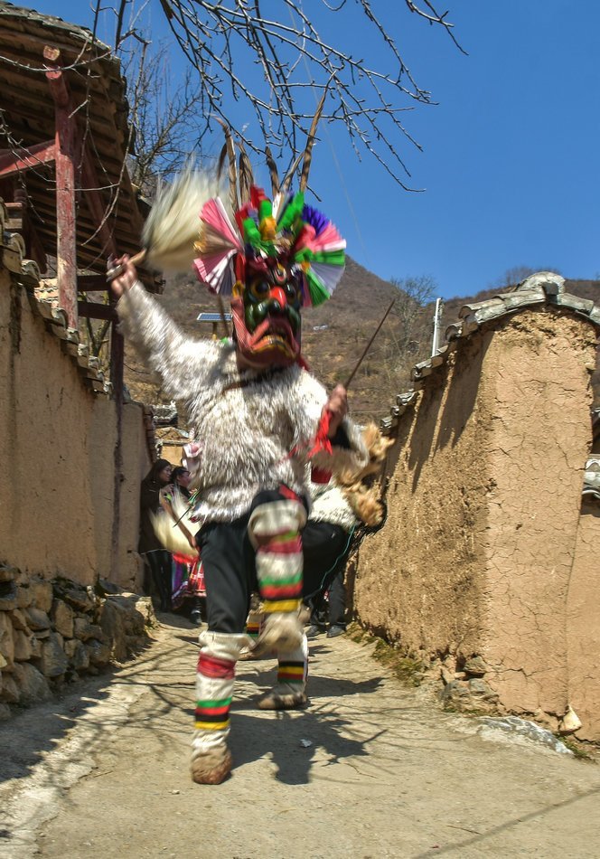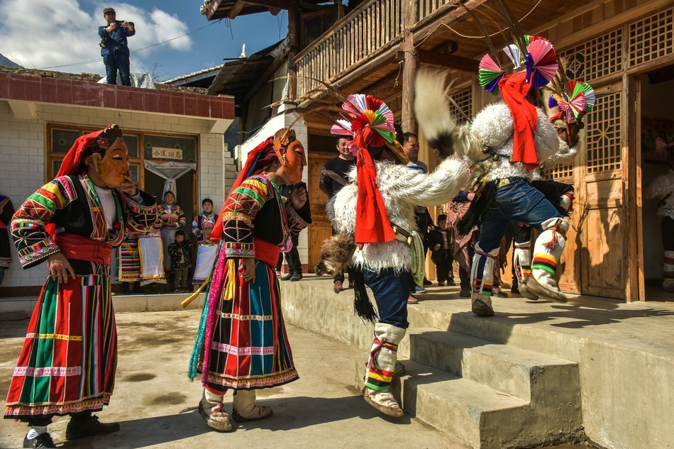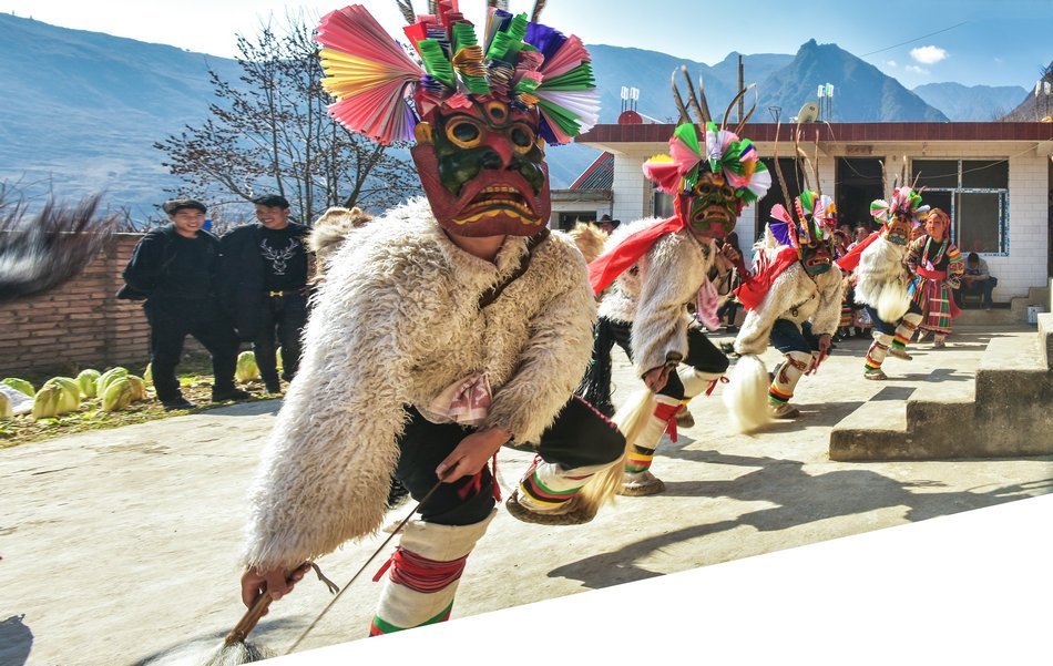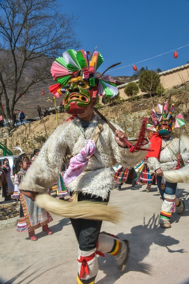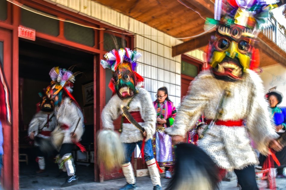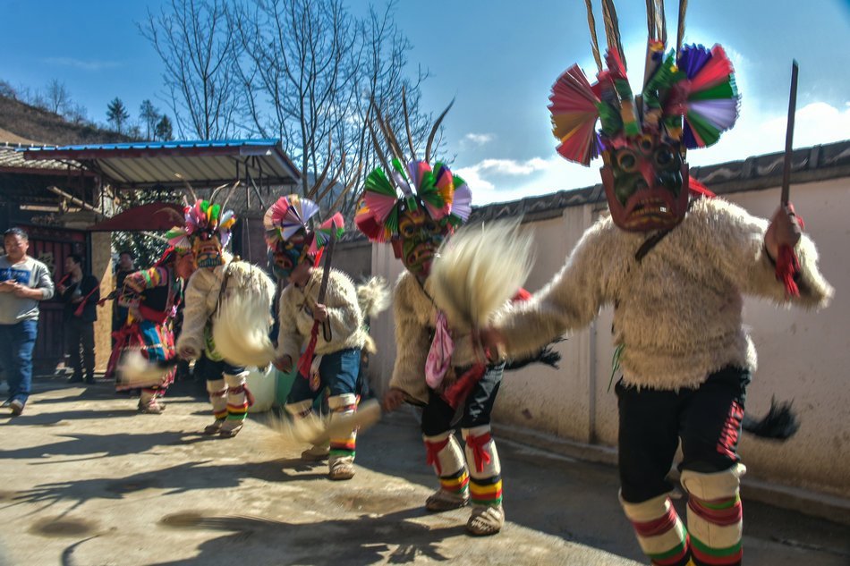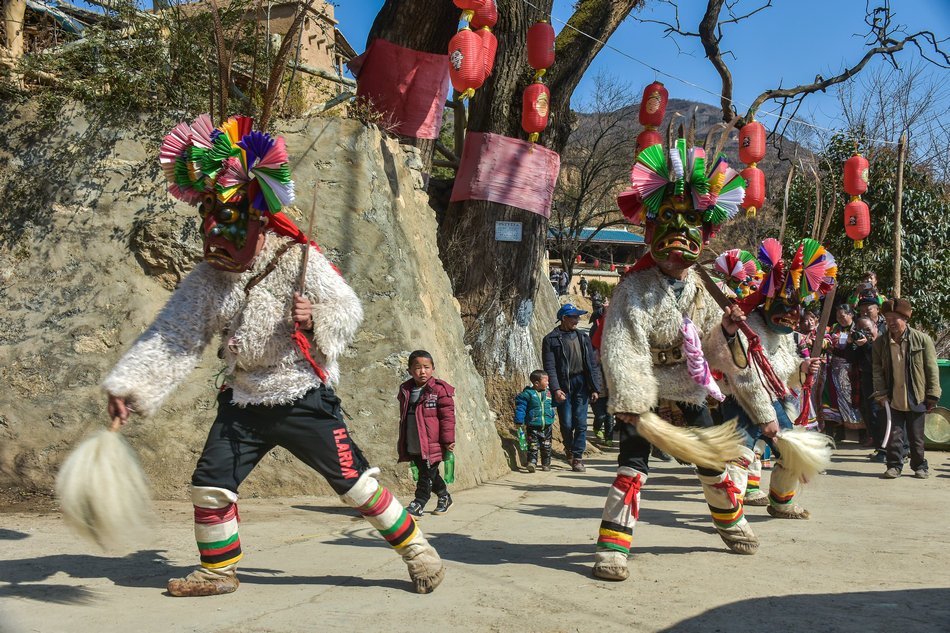 白马藏族居住在山林里,每个寨子后面都是山,山里有很多的动物,白马藏族对动物非常崇拜,他们按照动物的名称对部落进行命名,这是白马藏族一种奇特的文化现象。每当逢年过节,各个部落在戴上他们本部落的标志性面具后,驱邪祈福的歌舞表演就开始了。