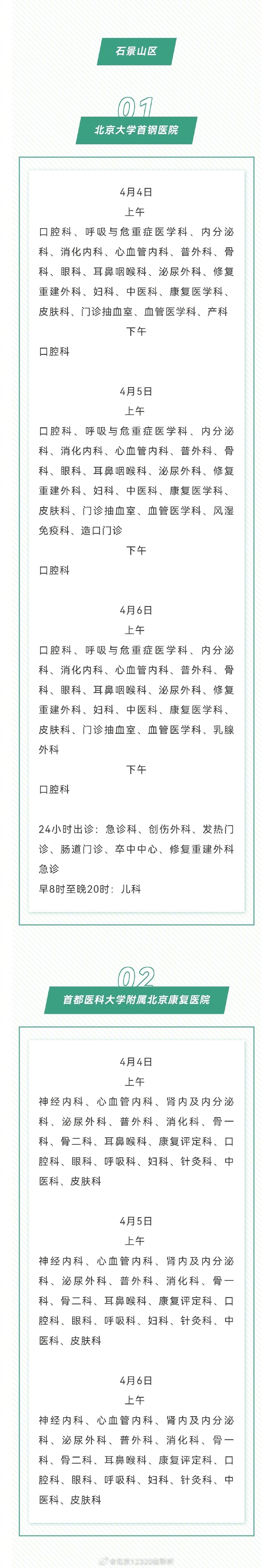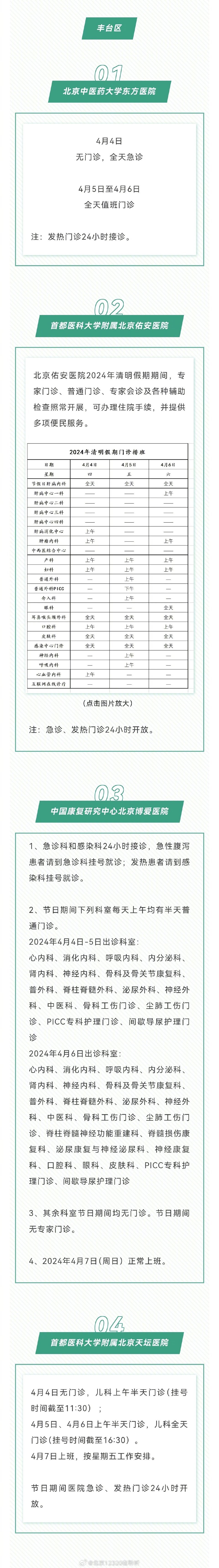 以下内容为北京12320收集整理,仅供参考,请以各医院实际出诊安排为准。
