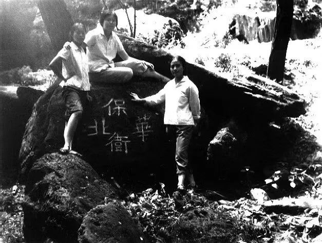 1974年8月6日,陆莹姐姐陆微、妹妹陆昀、堂姐刘敏、一二九运动清华大学地下党肖在田之子肖行军(拍摄者)找到石刻。