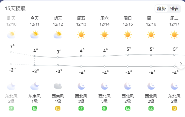从今天起北京气温有小幅下滑趋势,外出时请注意添衣保暖。