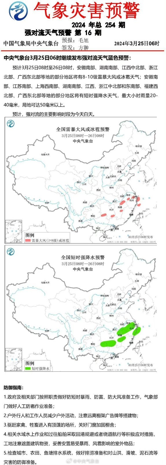 【中央气象台3月25日06时继续发布强对流天气蓝色预警】