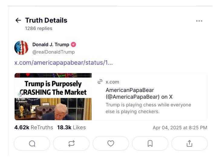 “特朗普正在引发股市崩盘……但他是故意的。”一段视频开篇说道。