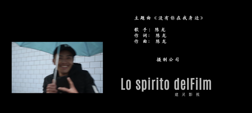 据片方早期曝料为了避免音乐侵权造成不必要的损失,早已为该部电影作品打造了专属影视音乐,片尾曲《没有你在我身边》配上电影的真实故事情节绝对是天作之合,由该片编剧及制片人陈龙作词曲唱,开启影视音乐新人第一步希望之窗,也是演员陈龙第一次尝试为影视剧作词谱曲并演唱的第一支原创网络音乐单曲。摄制公司显示为建灵影视,英文名称为Lo spirito delFilm,彰显影视制作工作室的大气和风范。