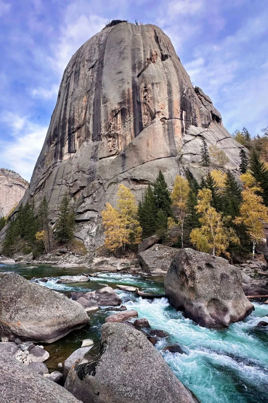 可可托海是一部用花岗岩、冰川和矿脉写就的地质史诗,处处透露着野性美。额尔齐斯河大峡谷像被巨斧劈开的伤口,裸露着3亿年前的海底火山岩。标志性的神钟山,是地球内部力量的雕塑作品。垂直的岩壁上清晰可见岩浆冷凝时形成的柱状节理,如同巨人的管风琴。