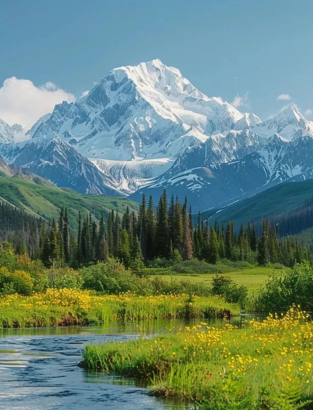 冰雪消融的声响构成了大地最初的晨曲。喀纳斯湖上游的冰川融水从山涧奔涌而下,禾木村木屋前的白桦树新发的嫩叶在阳光下近乎透明,图瓦人说这是"能看见神灵的季节"。被积雪滋养了一冬的黑土,很快就被冒头的野葱和野蒜染绿......