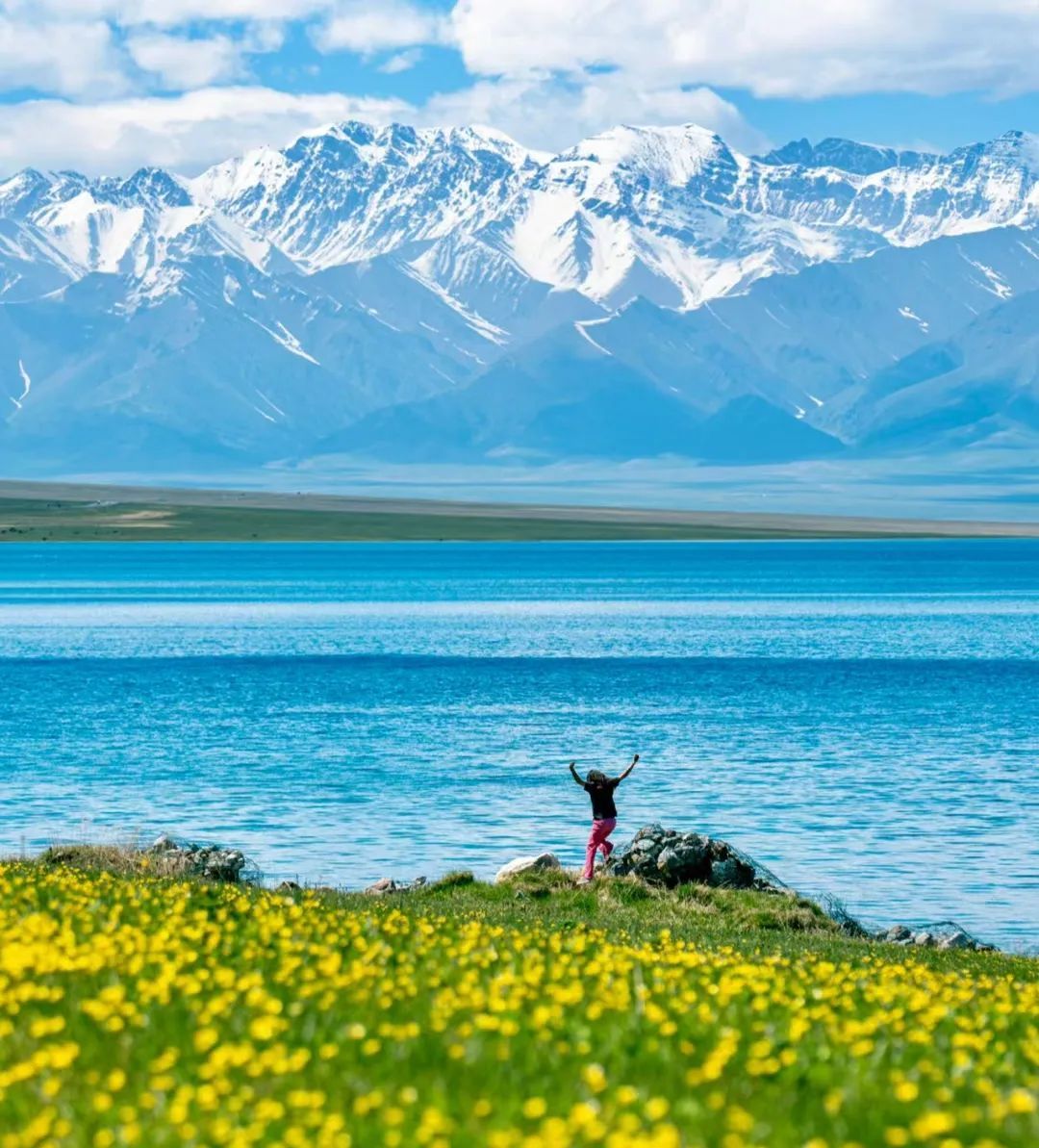 从空中俯瞰赛里木湖,一半森林草原一半谧蓝湖水。沿着公路向前,湖水变换着不同蓝,马卡龙蓝、Tiffany蓝、海蓝......夏天的赛里木湖更胜一筹~