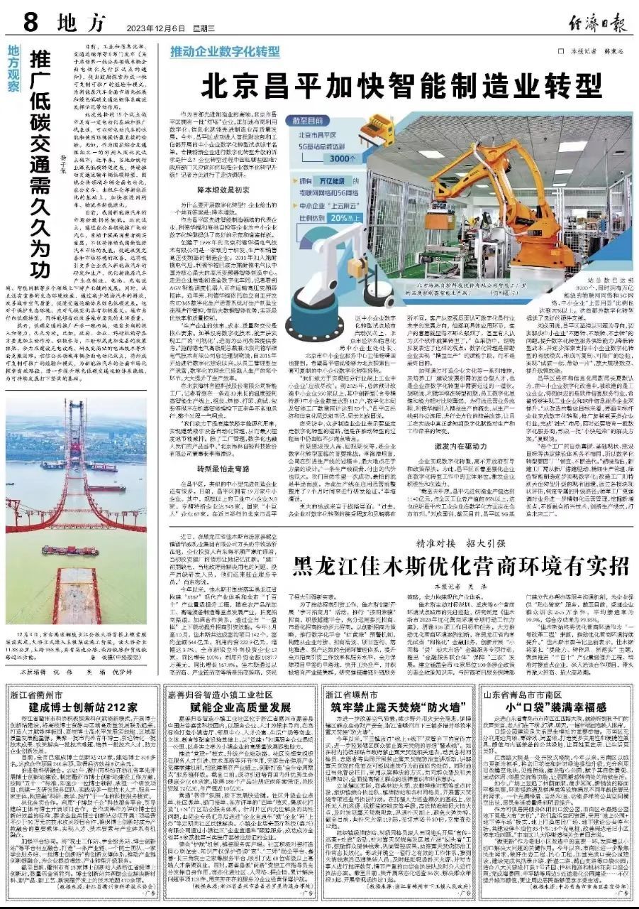 12月6日,经济日报聚焦昌平智能制造业高质量发展,报道了题为《北京昌平加快智能制造业转型》的文章。