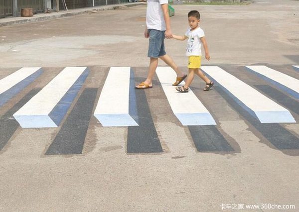 各位卡友,你们在哪里遇到过这样新奇的立体斑马线吗?看到后会自觉减速吗?