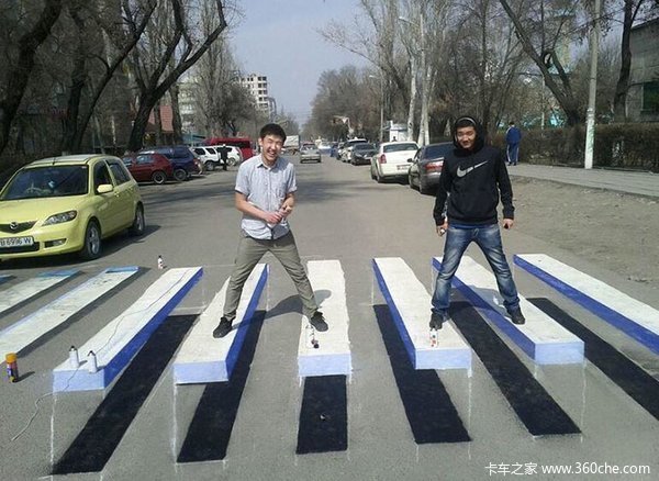 你以为3D斑马线是印度人的专利?其实,早在几年前,江苏、湖南、浙江等地的路面上就绘制过类似的立体斑马线。在美国,还有钢琴形状的、拉链形状的3D斑马线。