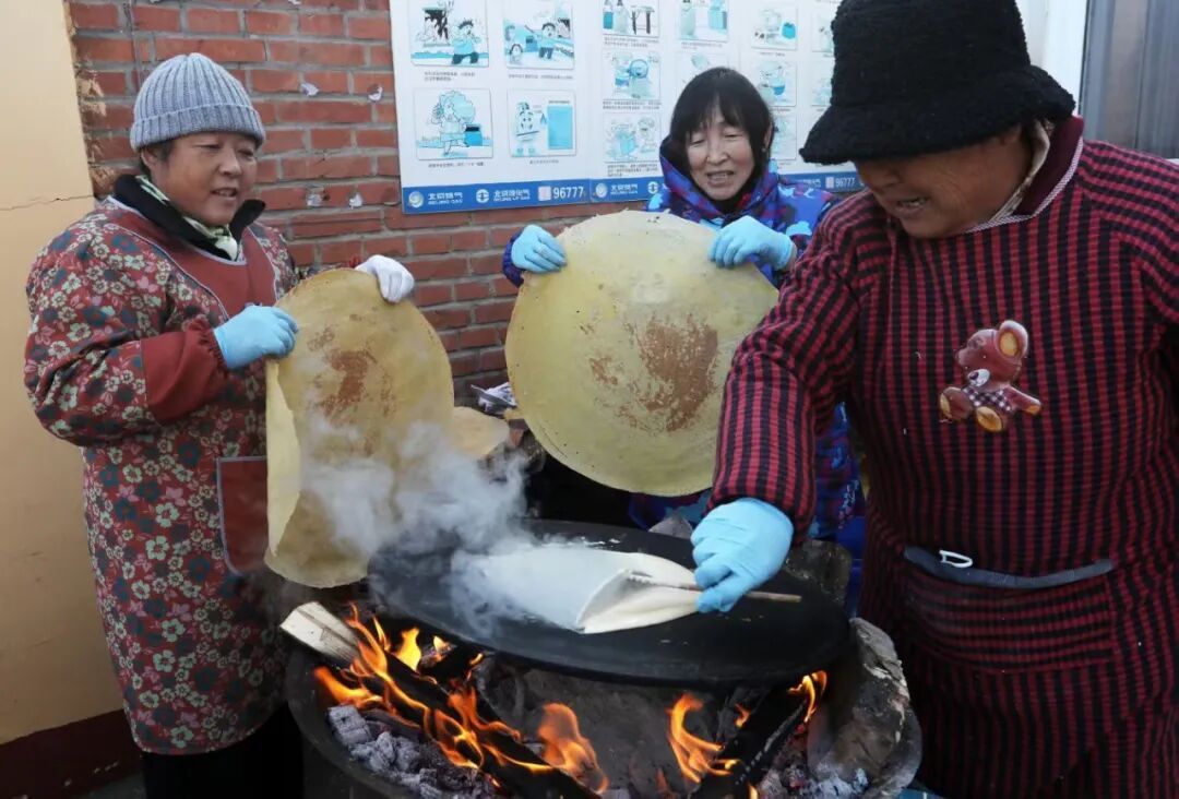 除了七宝五味粥,现场还准备了特色杀猪菜、酸菜白肉、米黄馍馍、煎饼、手工豆腐脑等一众地道美食,全方位满足游客的味蕾期待。市民吕慧敏和朋友结伴而来,她笑着说:“今天的美食集市上乡村美食太多了,刚出锅的大油饼香极了。”