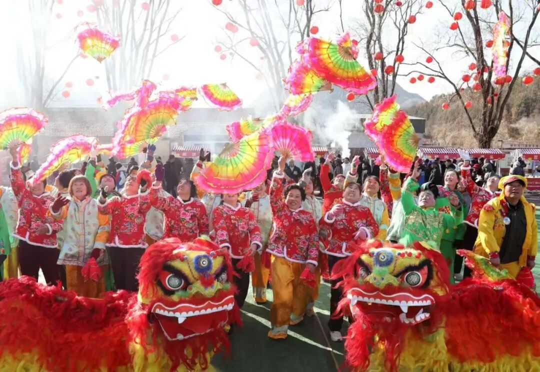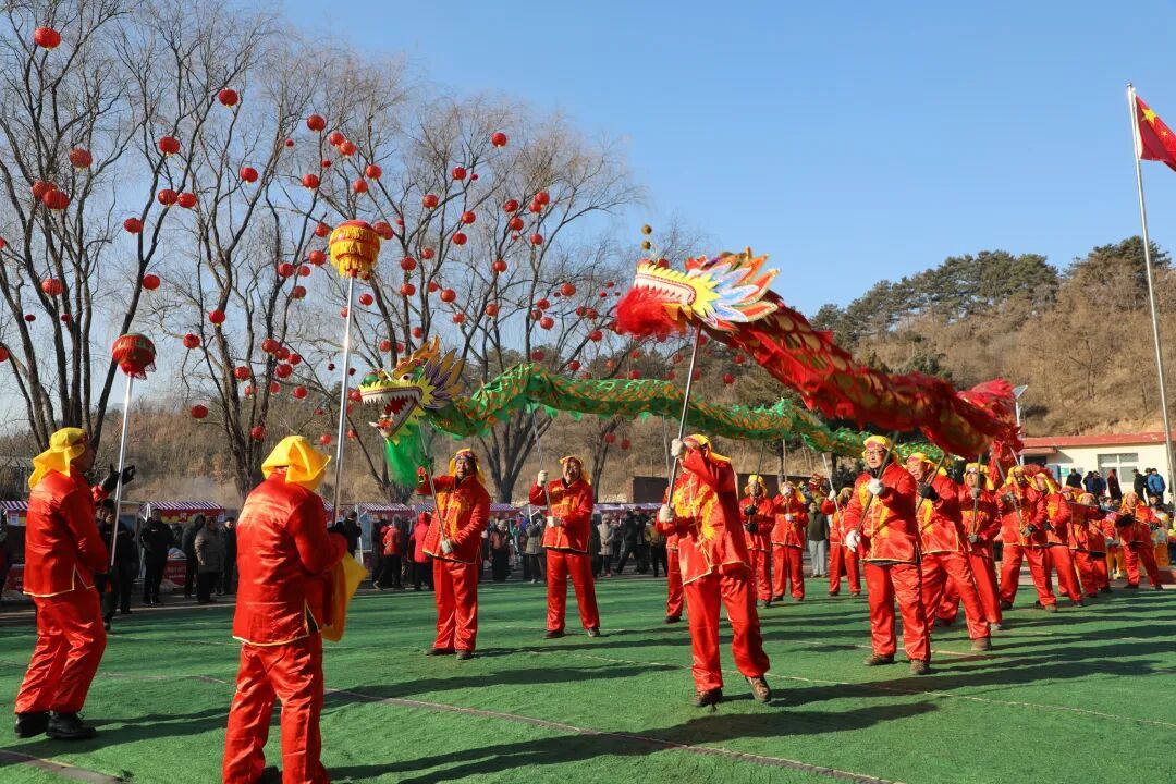 祈福仪式后,激昂的锣鼓声瞬间响彻整个村落。精彩的民俗展演轮番登场,点燃全场热情。舞龙舞狮腾跃翻飞、摇头献瑞,将节庆的热闹氛围拉满;秧歌队身着五彩服饰,手持绢花彩扇,踏着欢快的节拍舞动,喜庆的旋律与欢声笑语在现场久久回荡。“今天帽山村真热闹,我专门从怀柔城区赶来的,这里舞龙舞狮、张灯结彩,特别有过年的气氛。”市民彭玉怀笑着说。