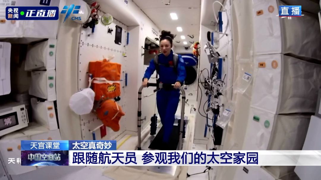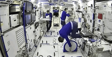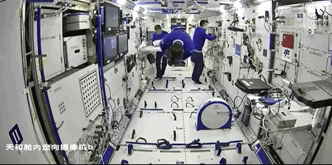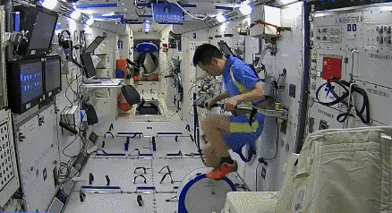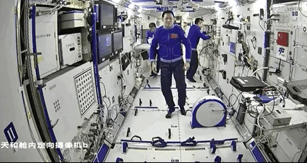 空间站内设有专门的锻炼区,在锻炼区内,健身器械都是特制的。航天员可以通过骑自行车、在太空跑台上跑步、使用拉力器来锻炼身体。