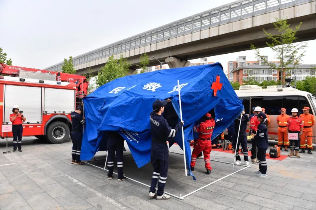 地震模拟演练是本次活动的重点环节,应急救援队伍迅速投入实战化演练,高效完成防灾减灾指挥与保障营地搭建,从帐篷搭建、通讯设备调试到后勤保障区规划,每个环节紧密衔接,展现出专业的协同作战能力;在防护服装备演示环节,队员们详细讲解防护用具穿戴流程、使用规范及注意事项,通过标准示范与情景模拟,直观呈现防护装备在灾害救援中的关键作用,以硬核实力彰显守护群众安全的坚实力量。