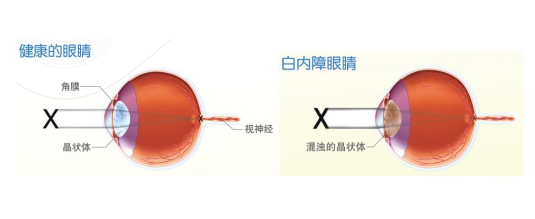 图二 健康眼睛与白内障眼睛对比图