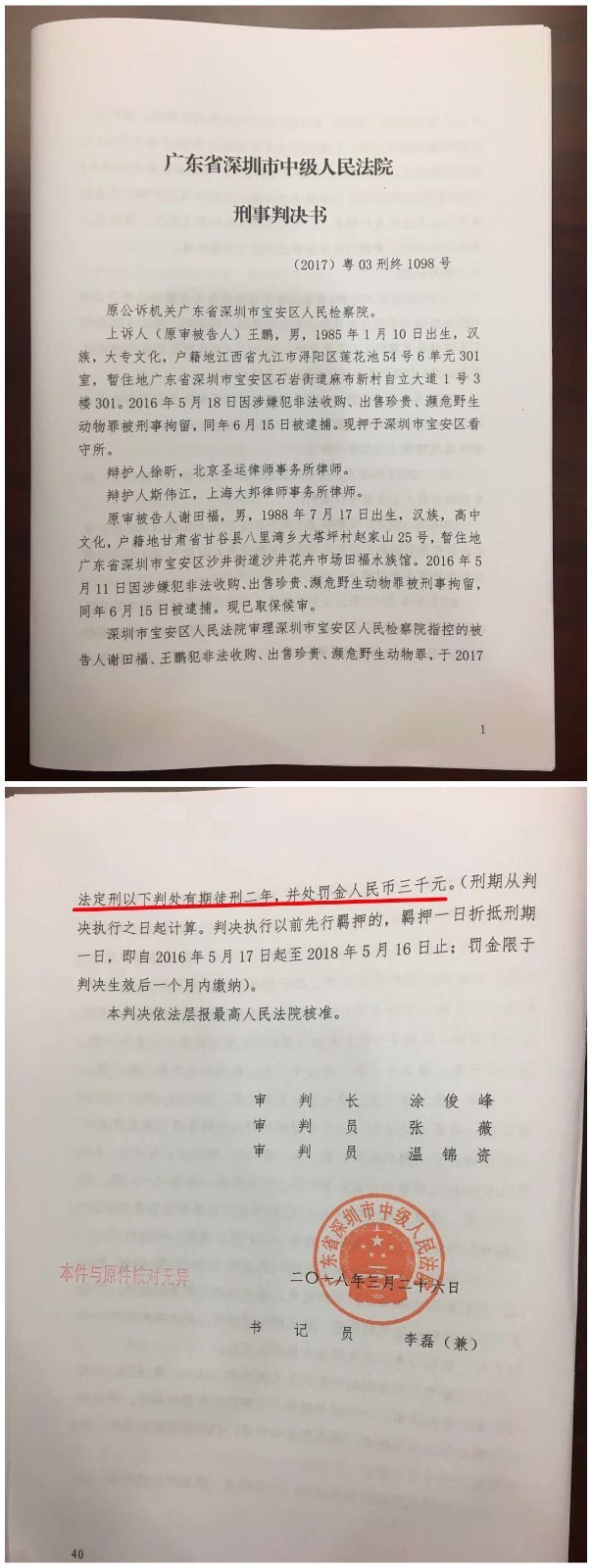 @时间新闻 亦注意到,二审判决书认定王鹏犯非法收购、出售珍贵、濒危野生动物罪,比一审判决多了“非法收购”。任盼盼表示,包括这一疑问,她也会和律师商量,在之后的声明和申诉中提出。